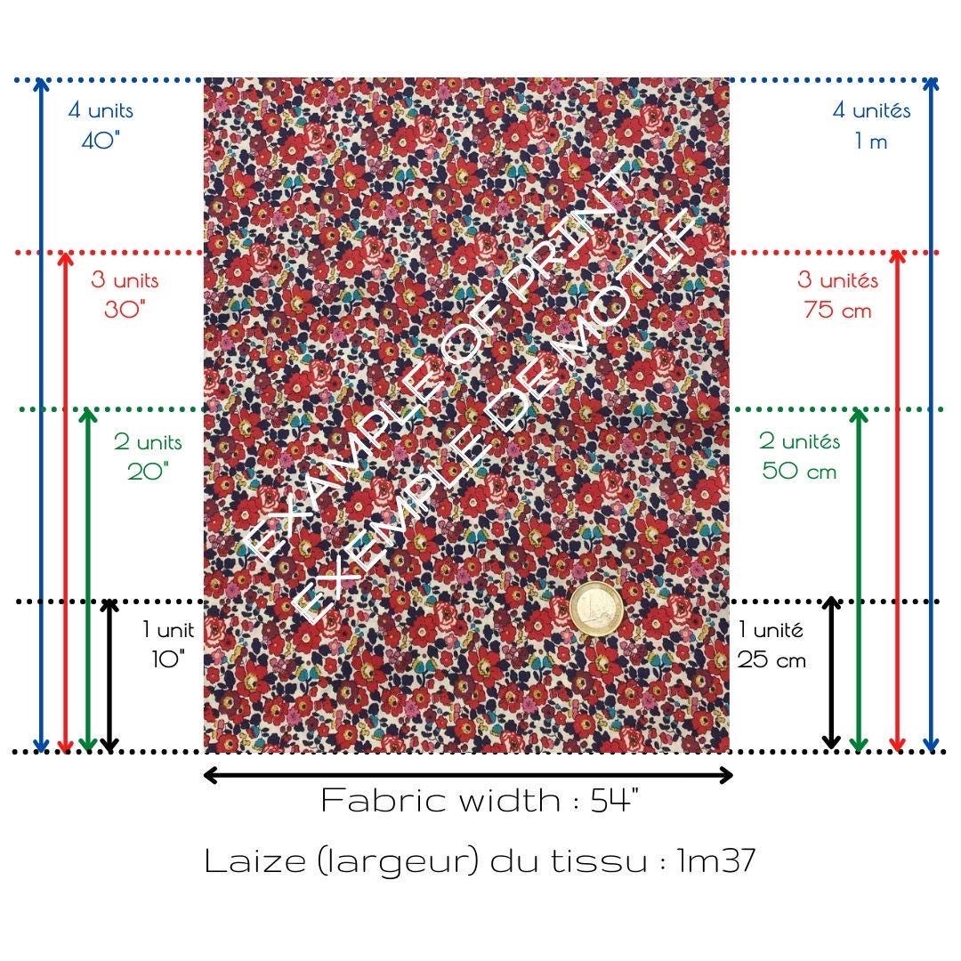 The price is for 25cm of fabric (10"), but if you order more you'll receive your fabric in one continuous length. For example, if you order two units, you'll receive a piece of fabric 50cm (20") long and 1m37 (54") wide etc.