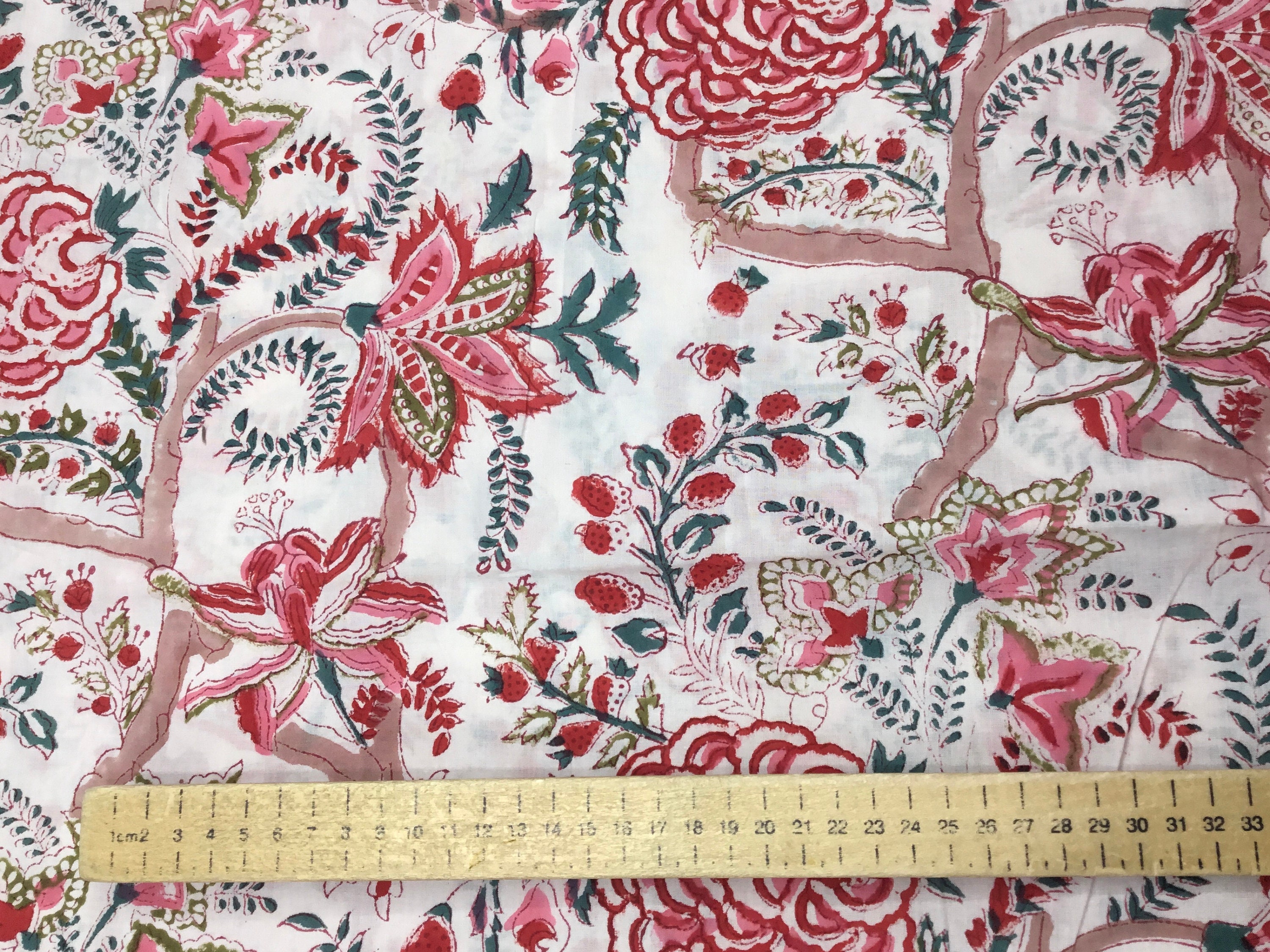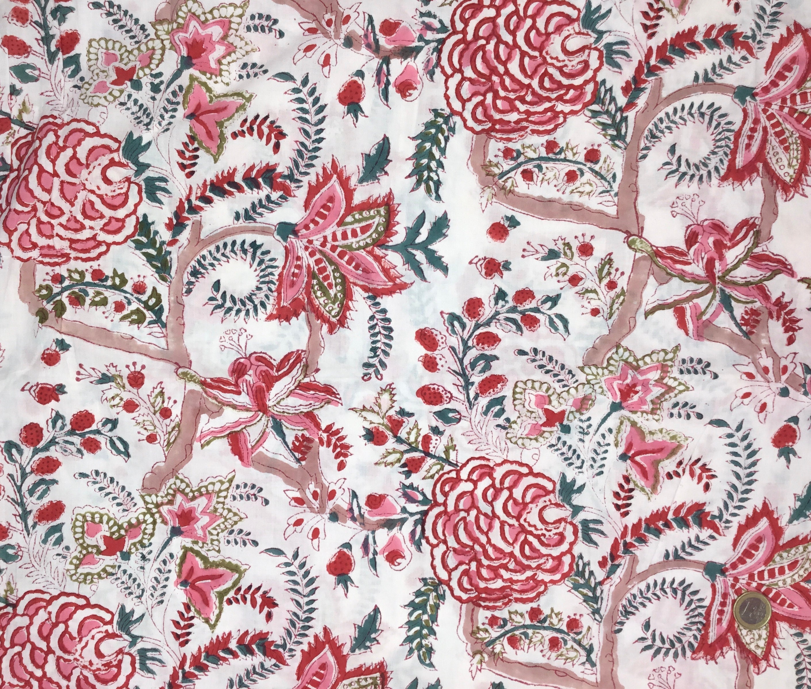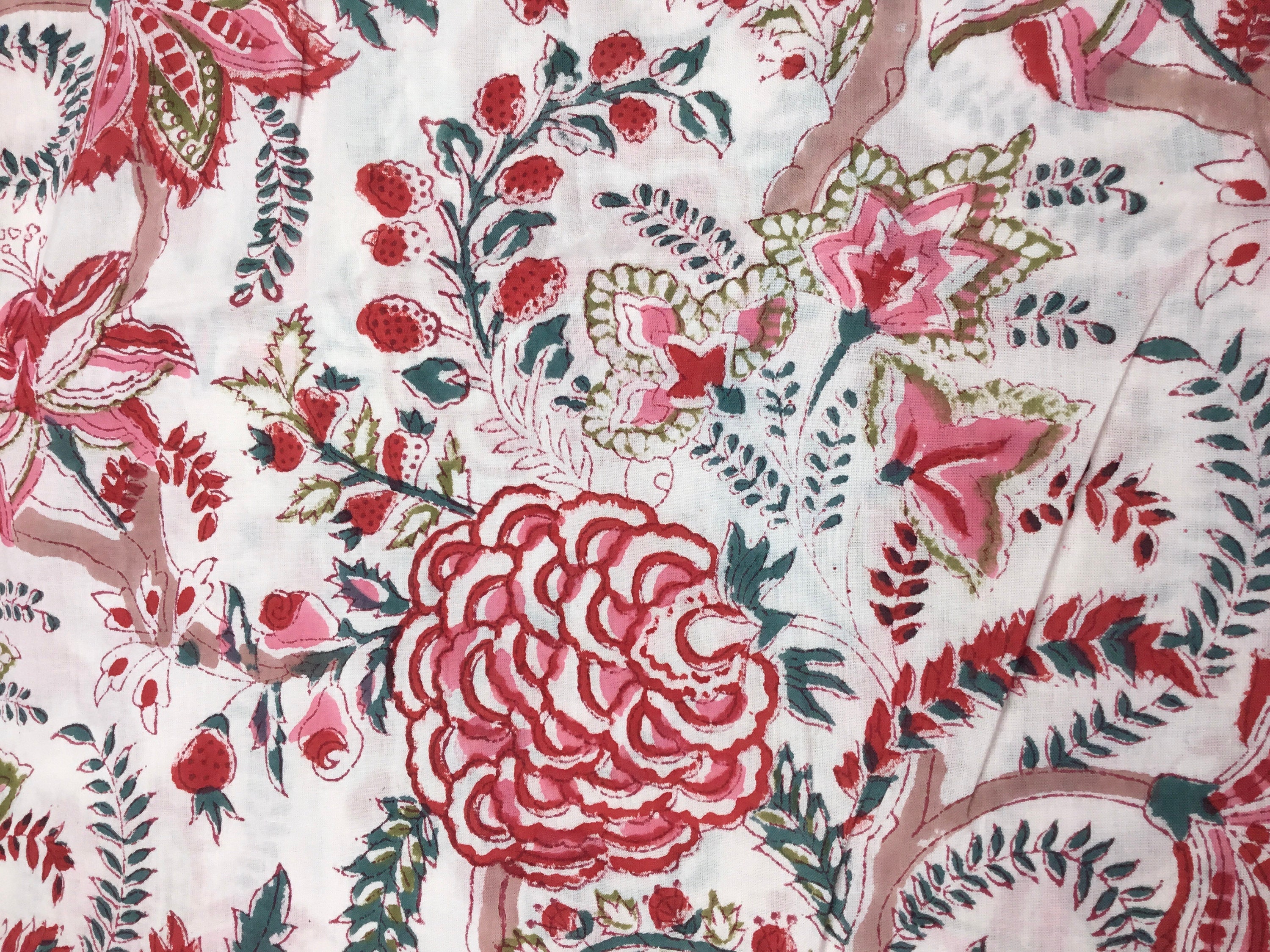 Indian block printed cotton muslin, hand made. Rose Jaipur blockprint
