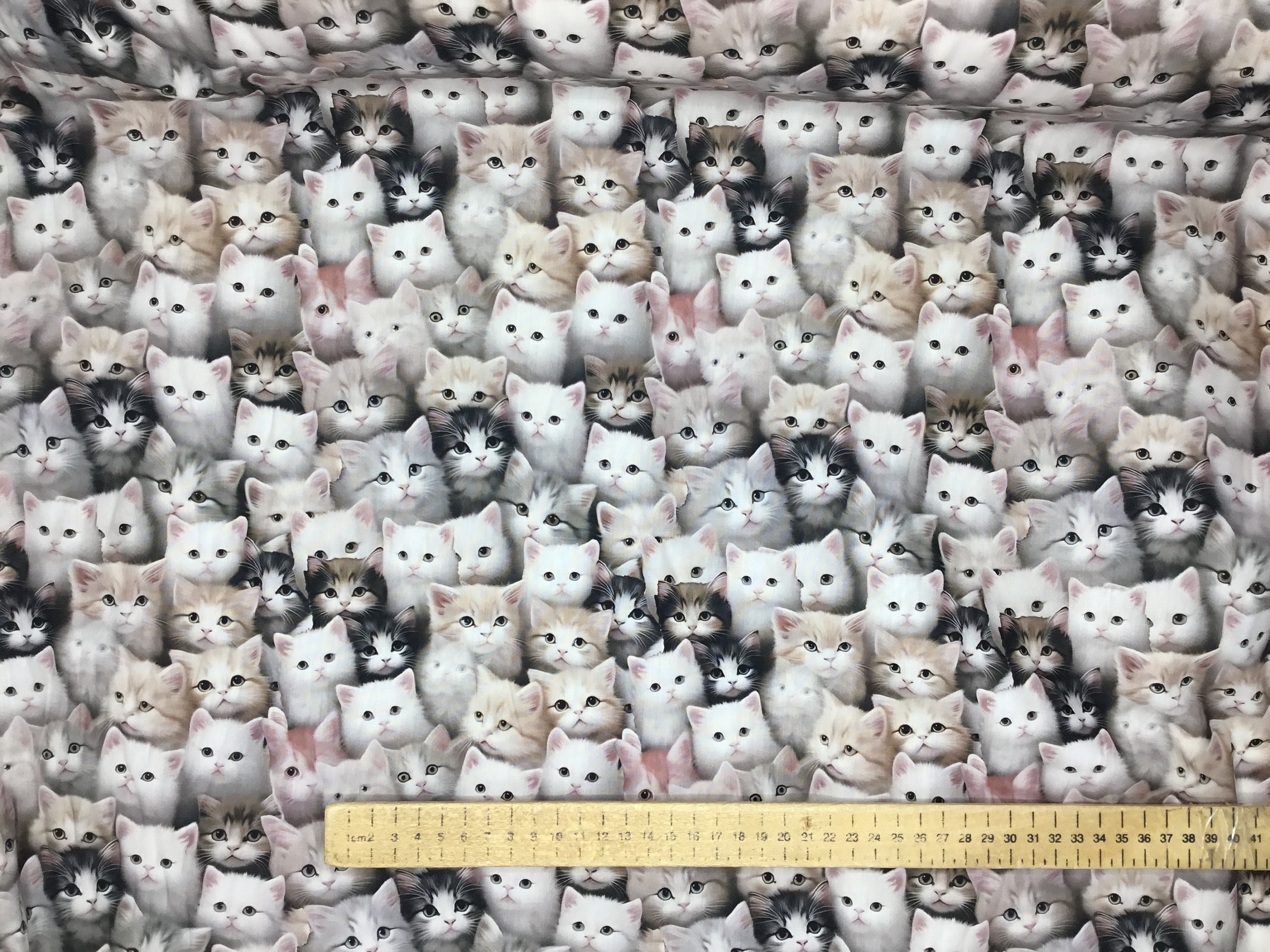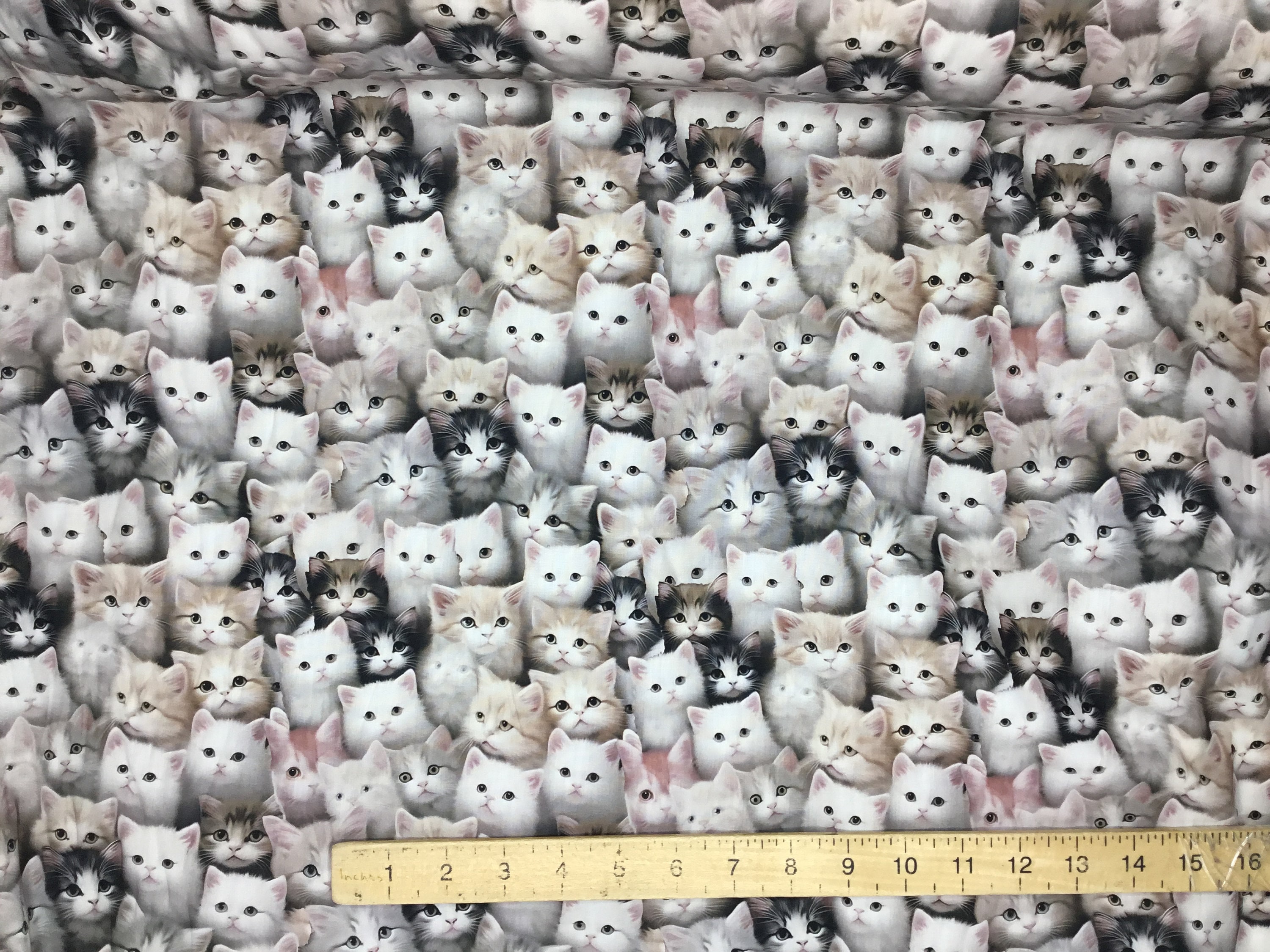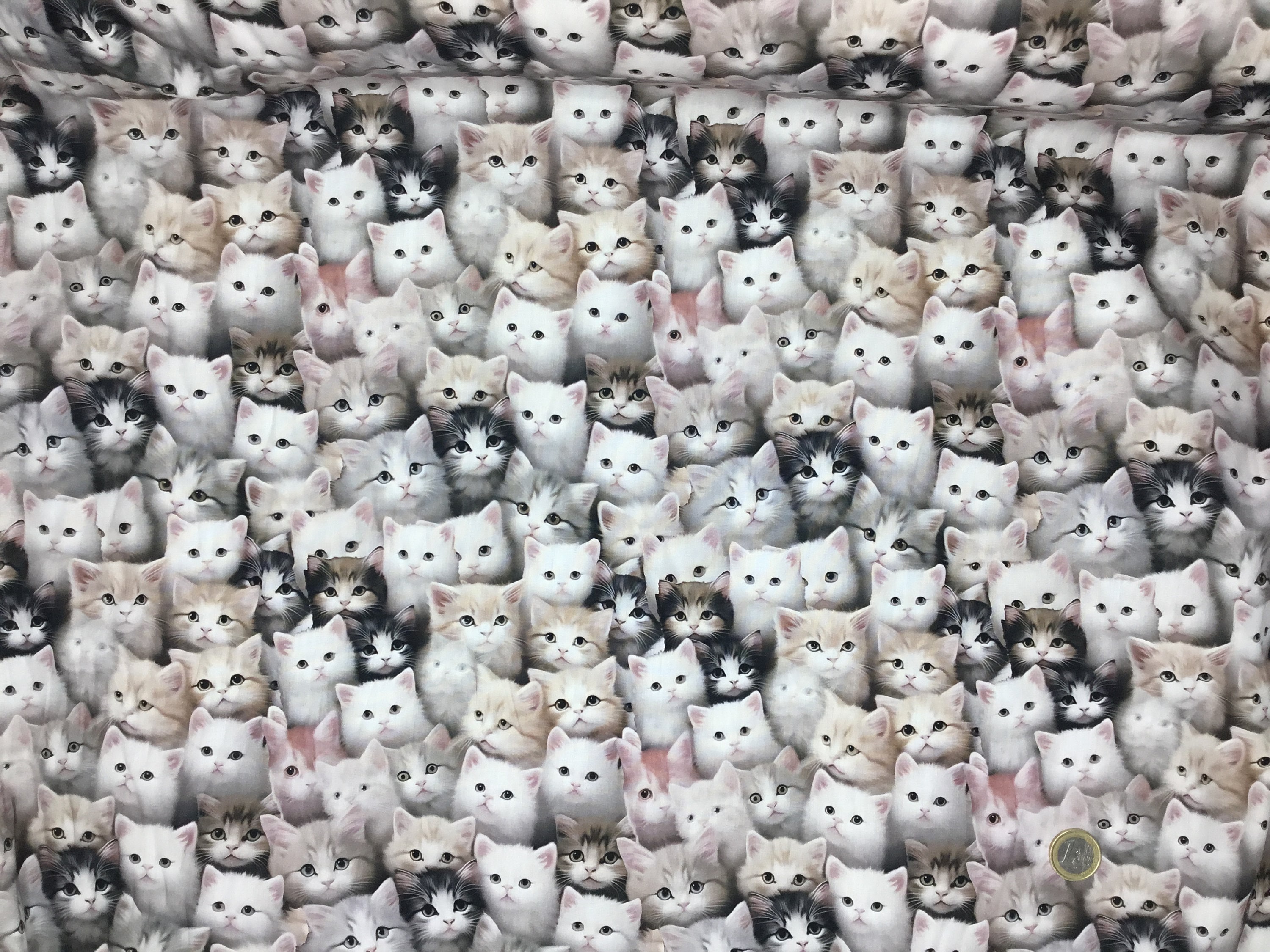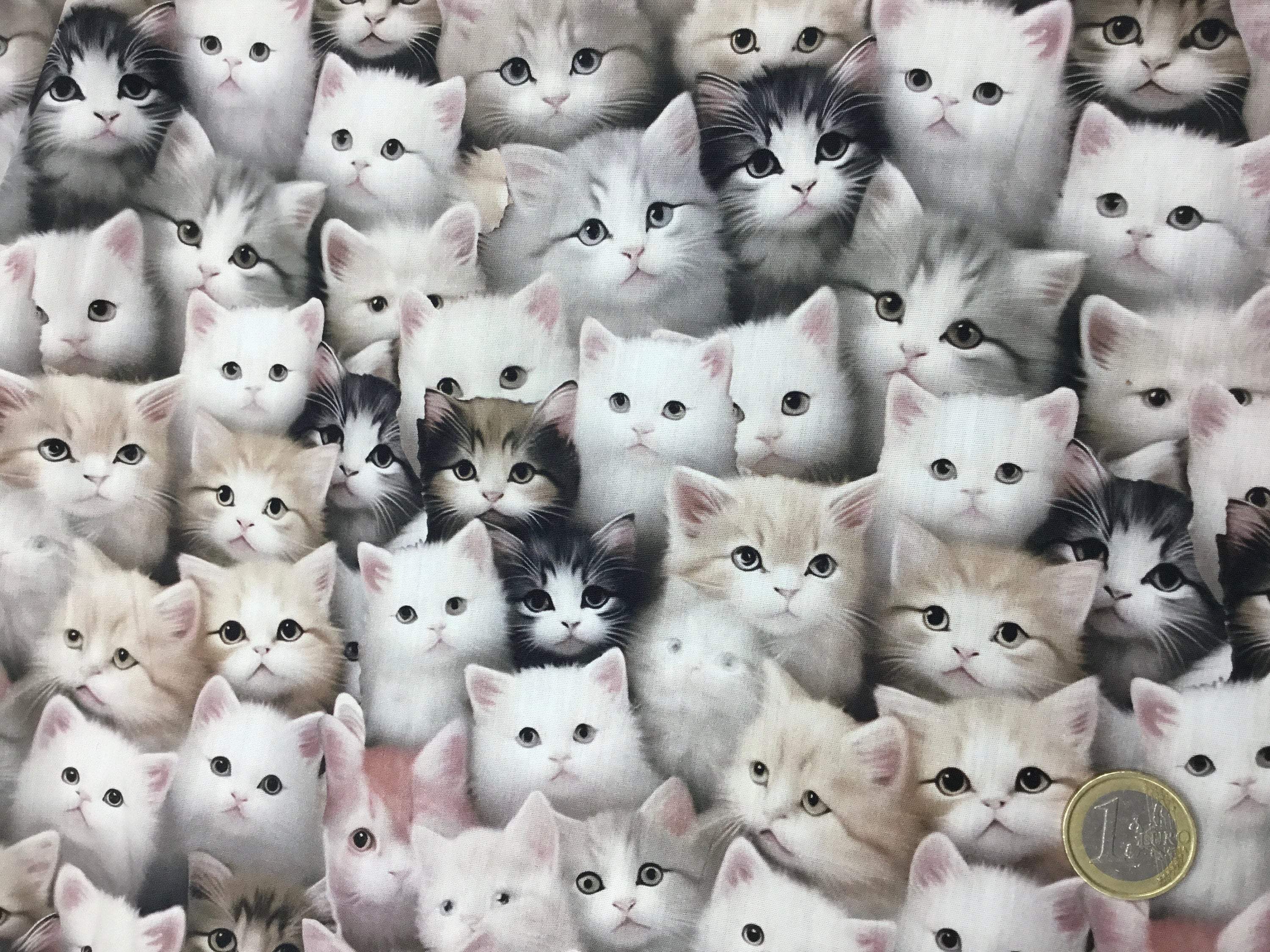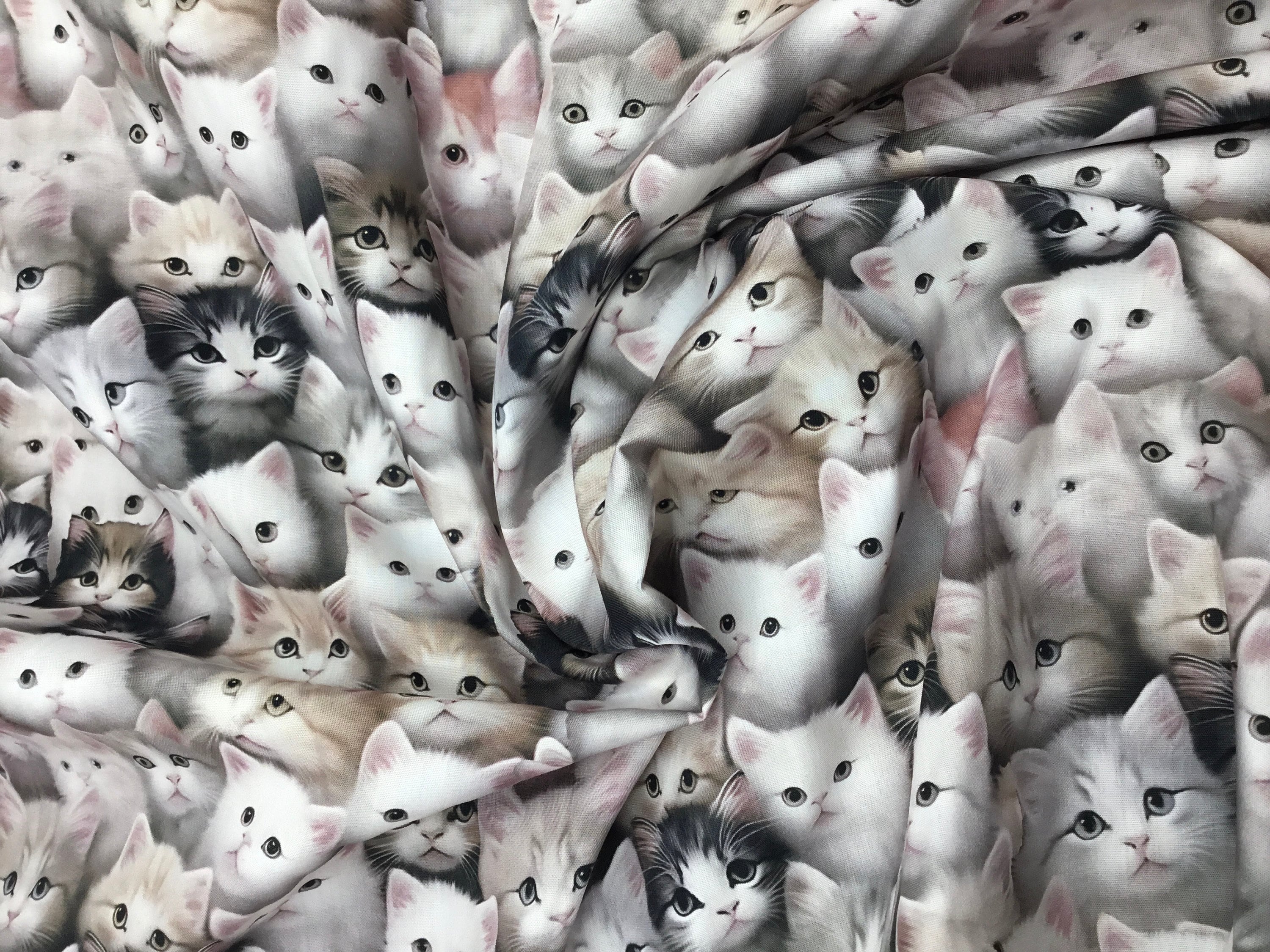 Oekotex certified cotton poplin, digital cat ou kitten print