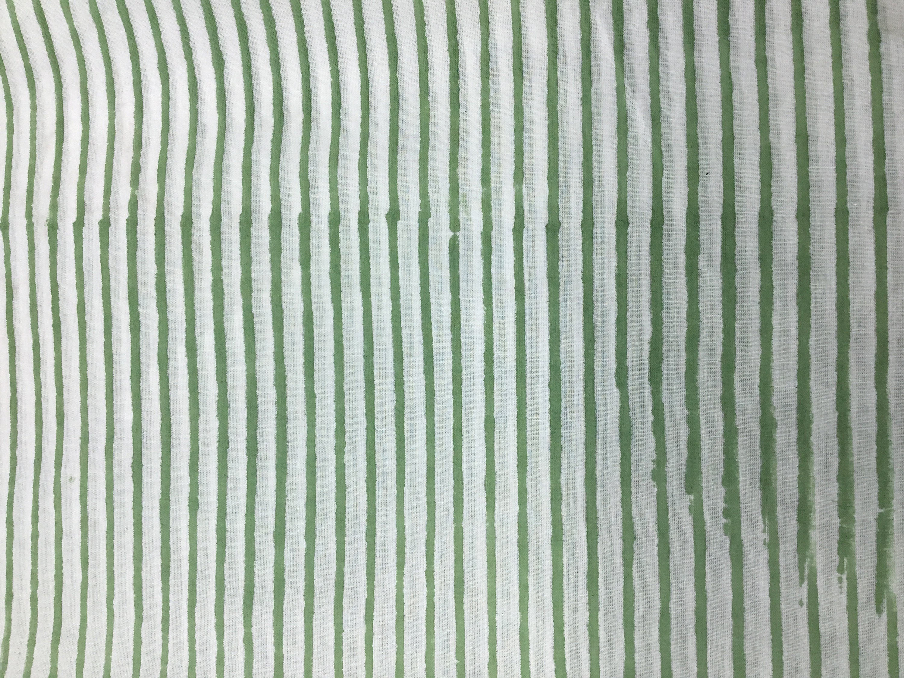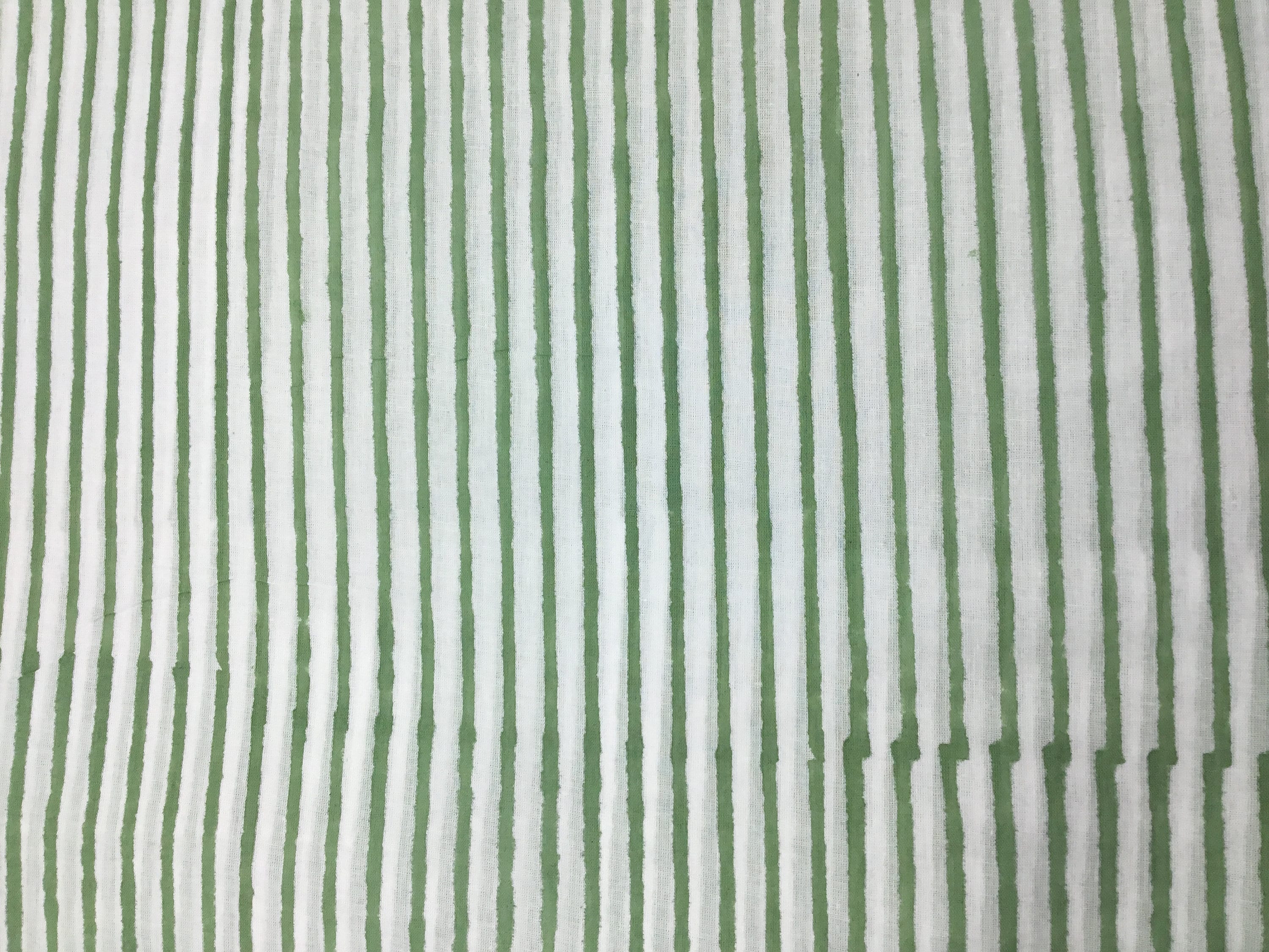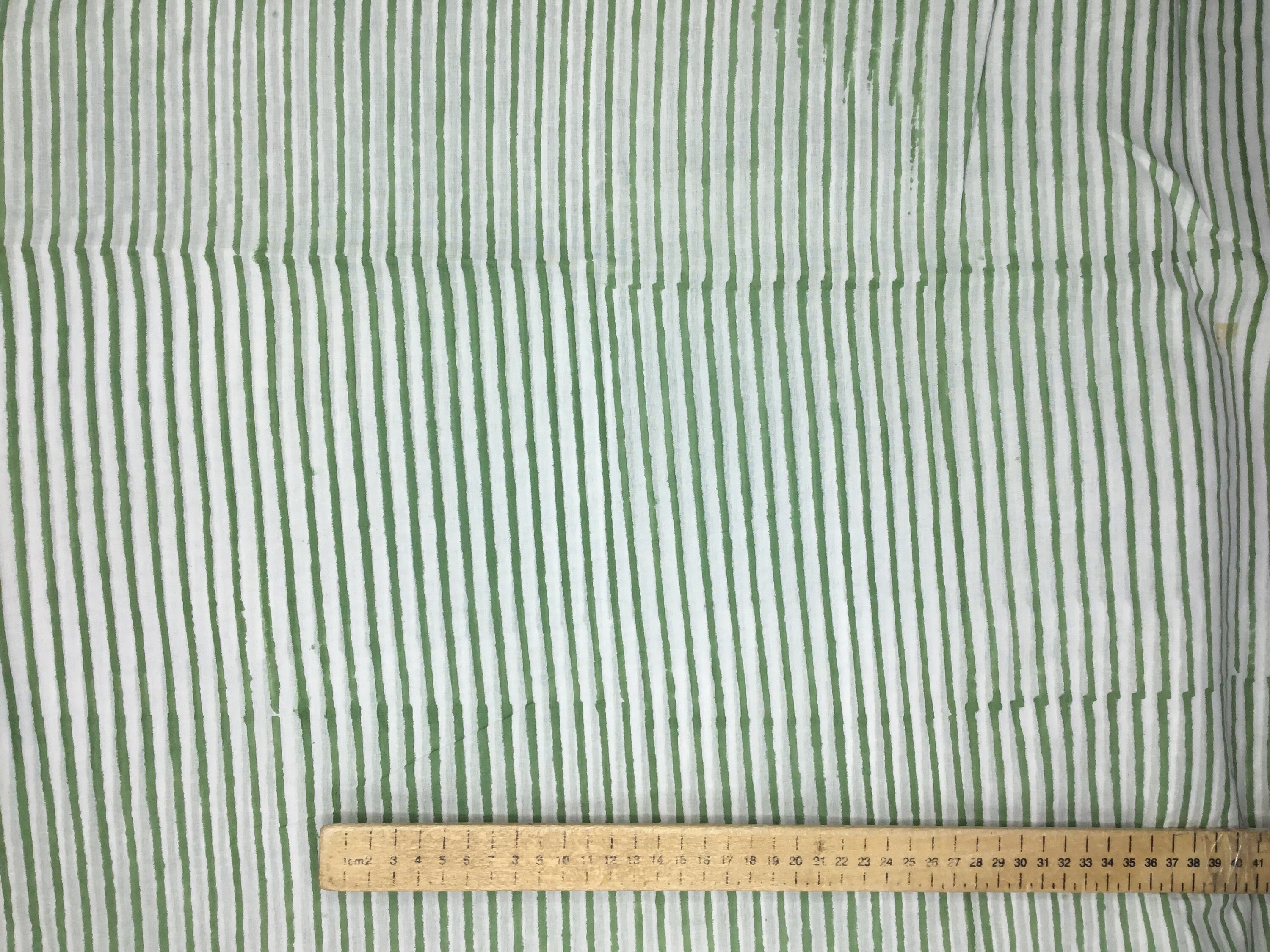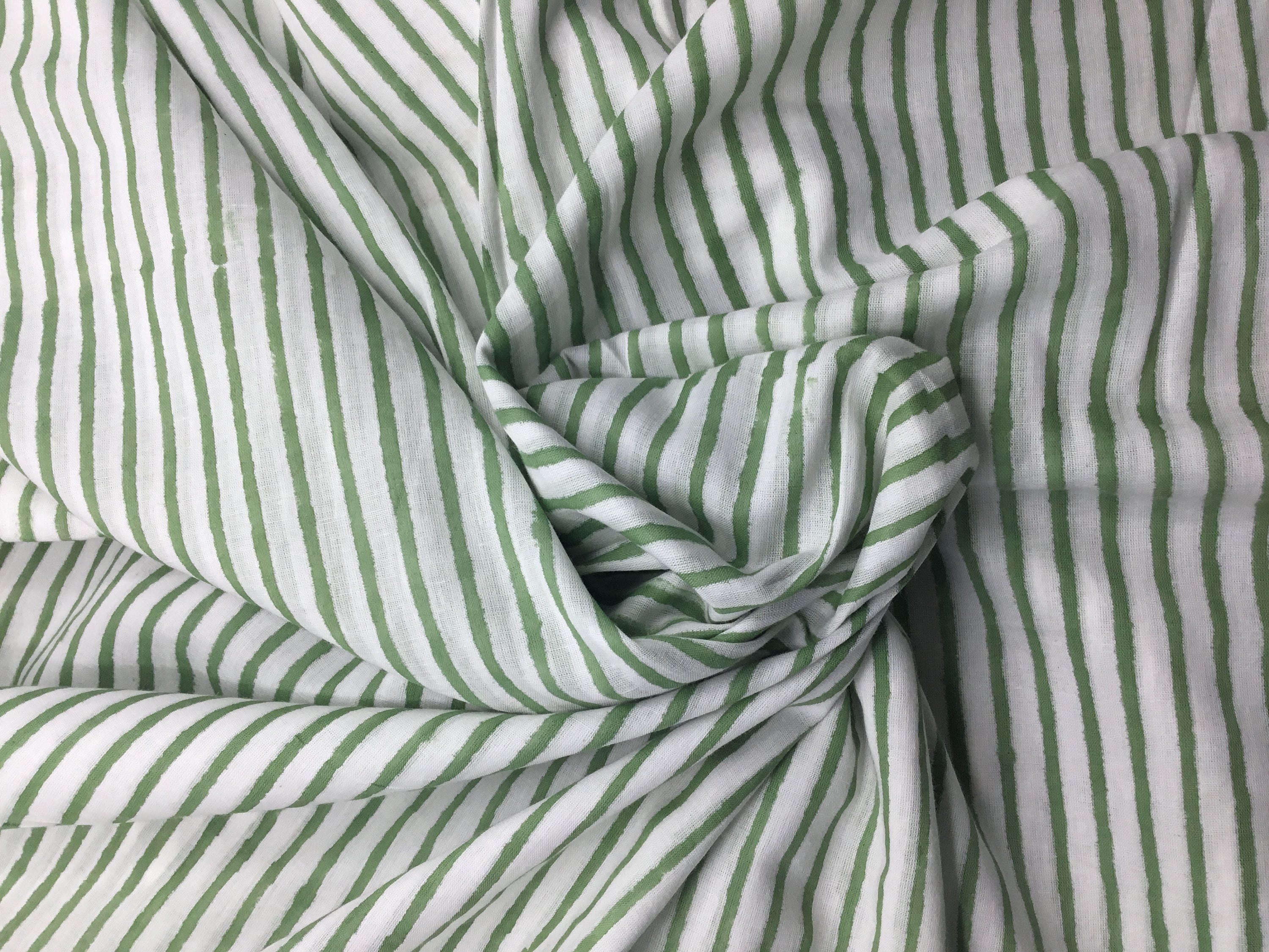 Indian block printed cotton muslin, hand made. Avocado green stripes