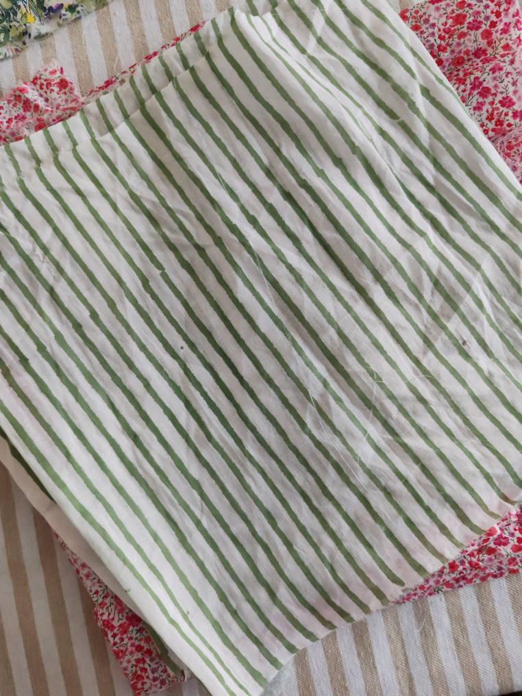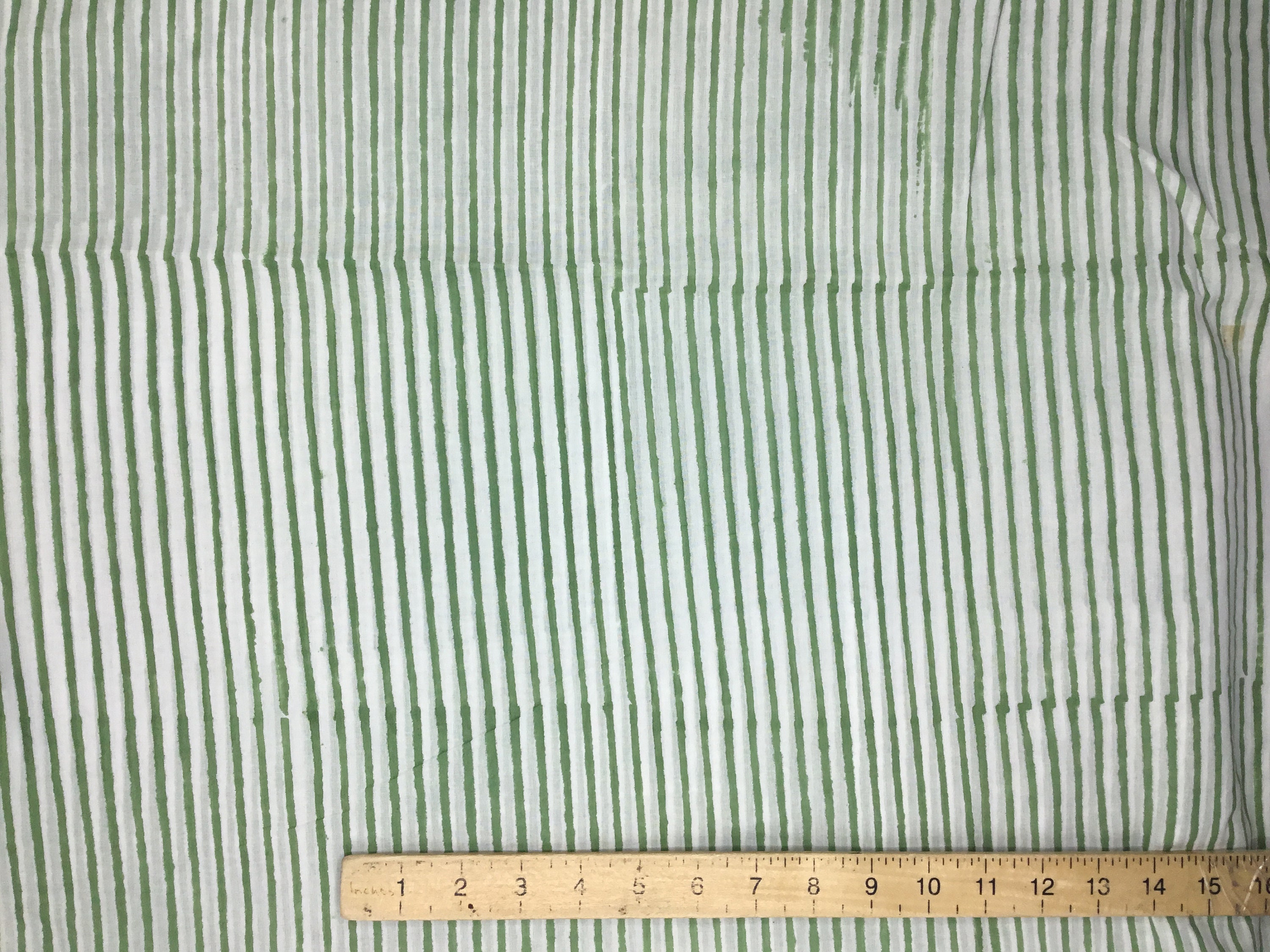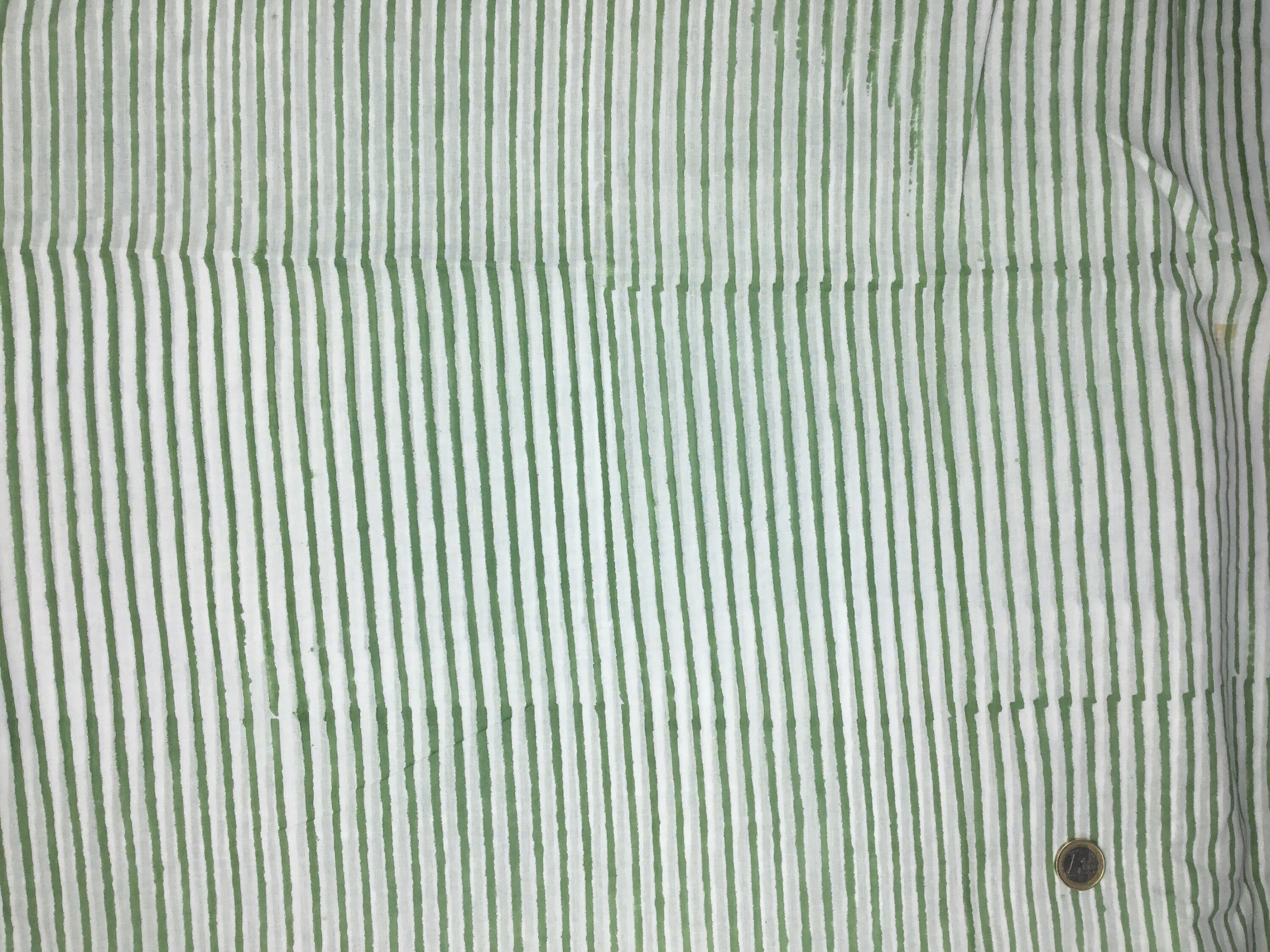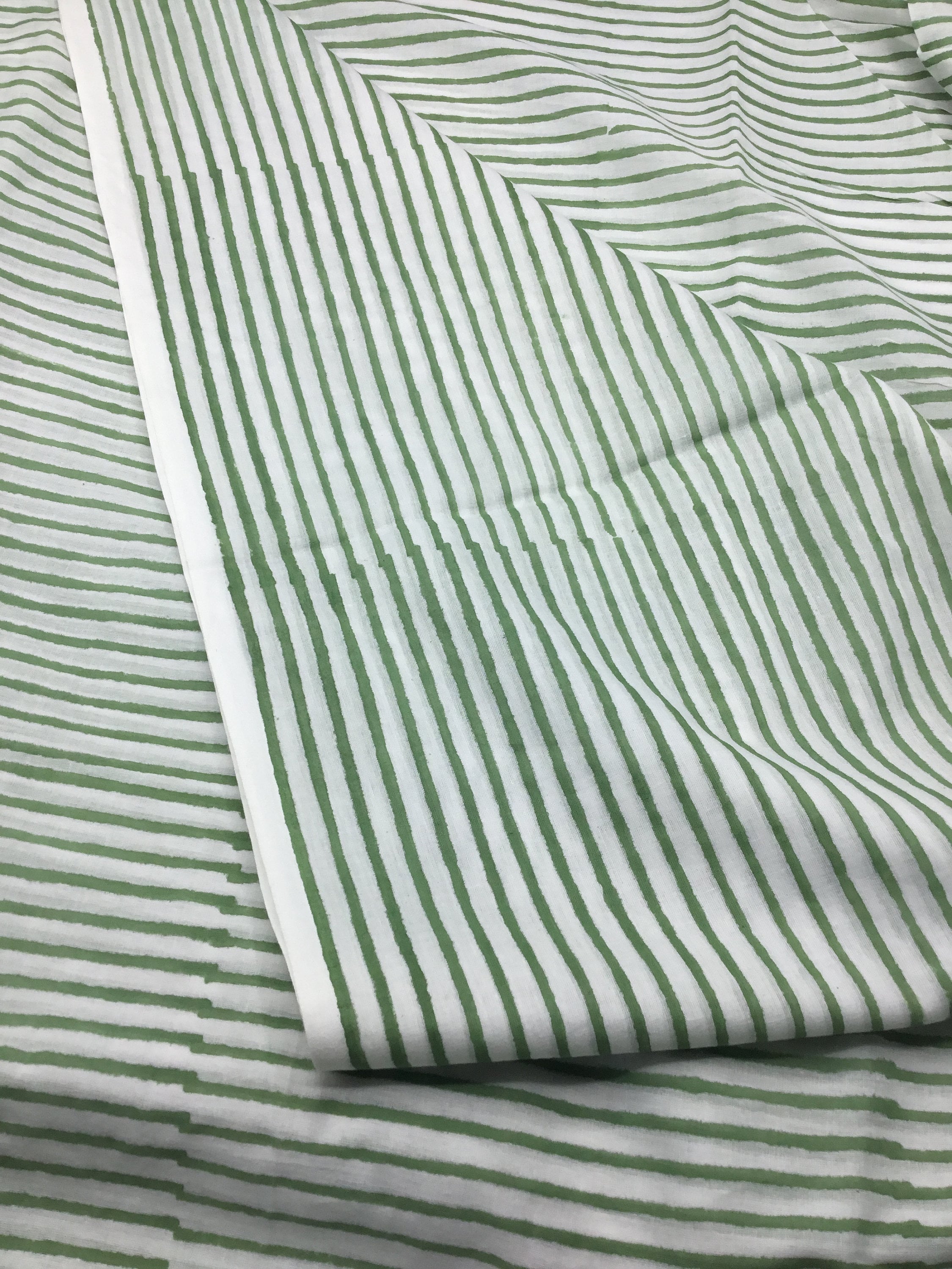 Indian block printed cotton muslin, hand made. Avocado green stripes