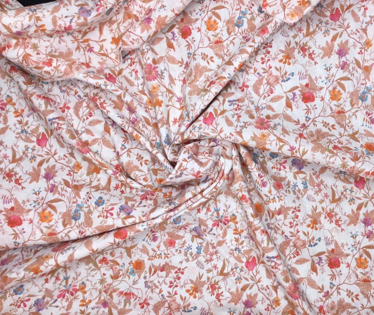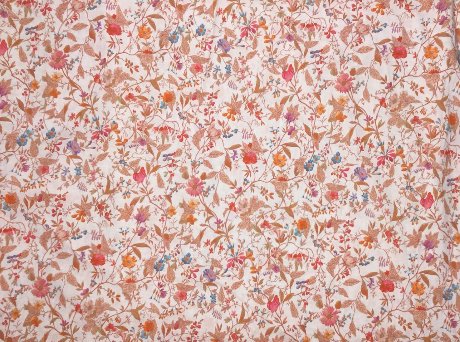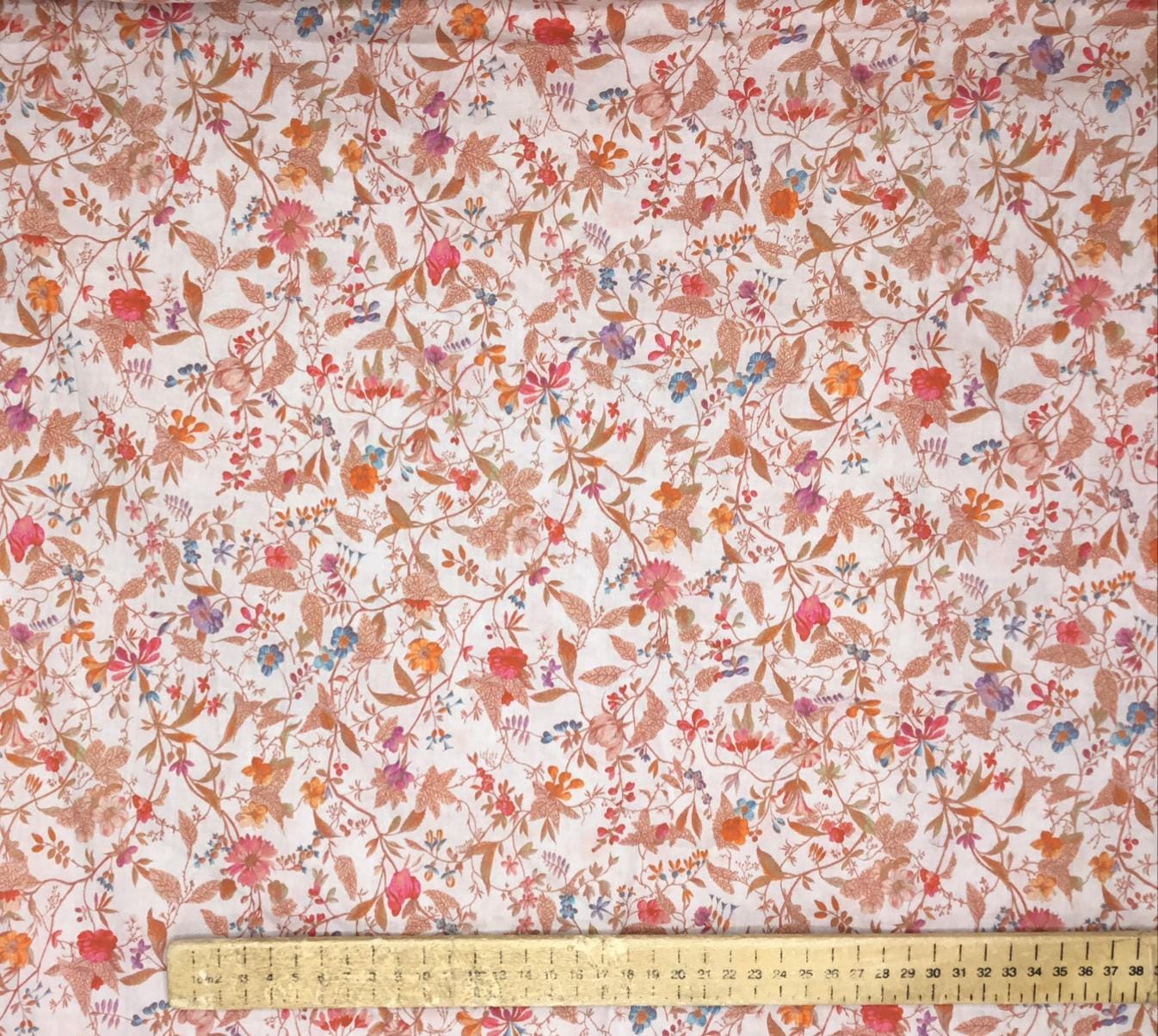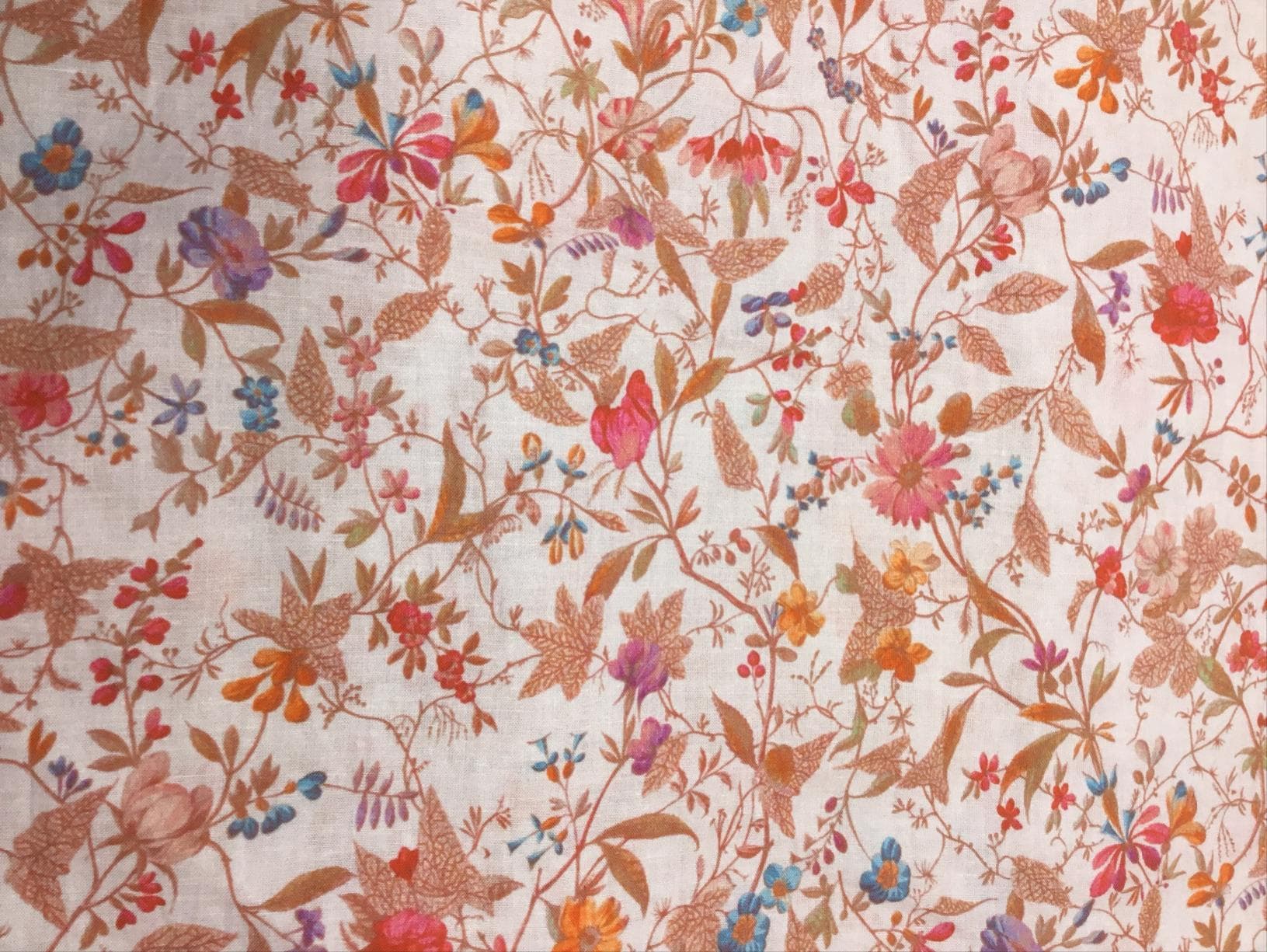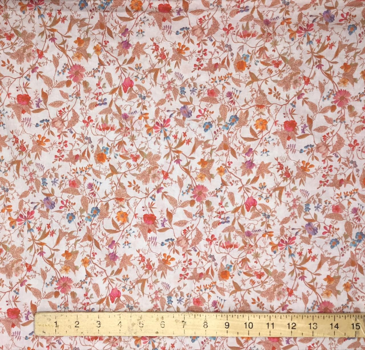 English Pima lawn cotton fabric, beige/soft pink floral print