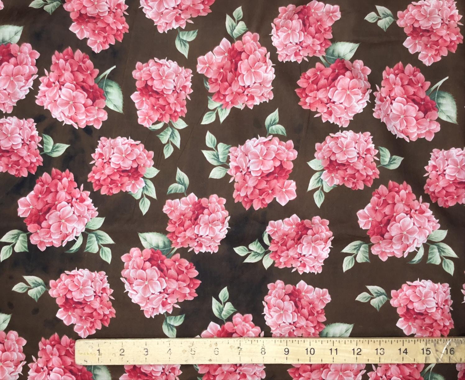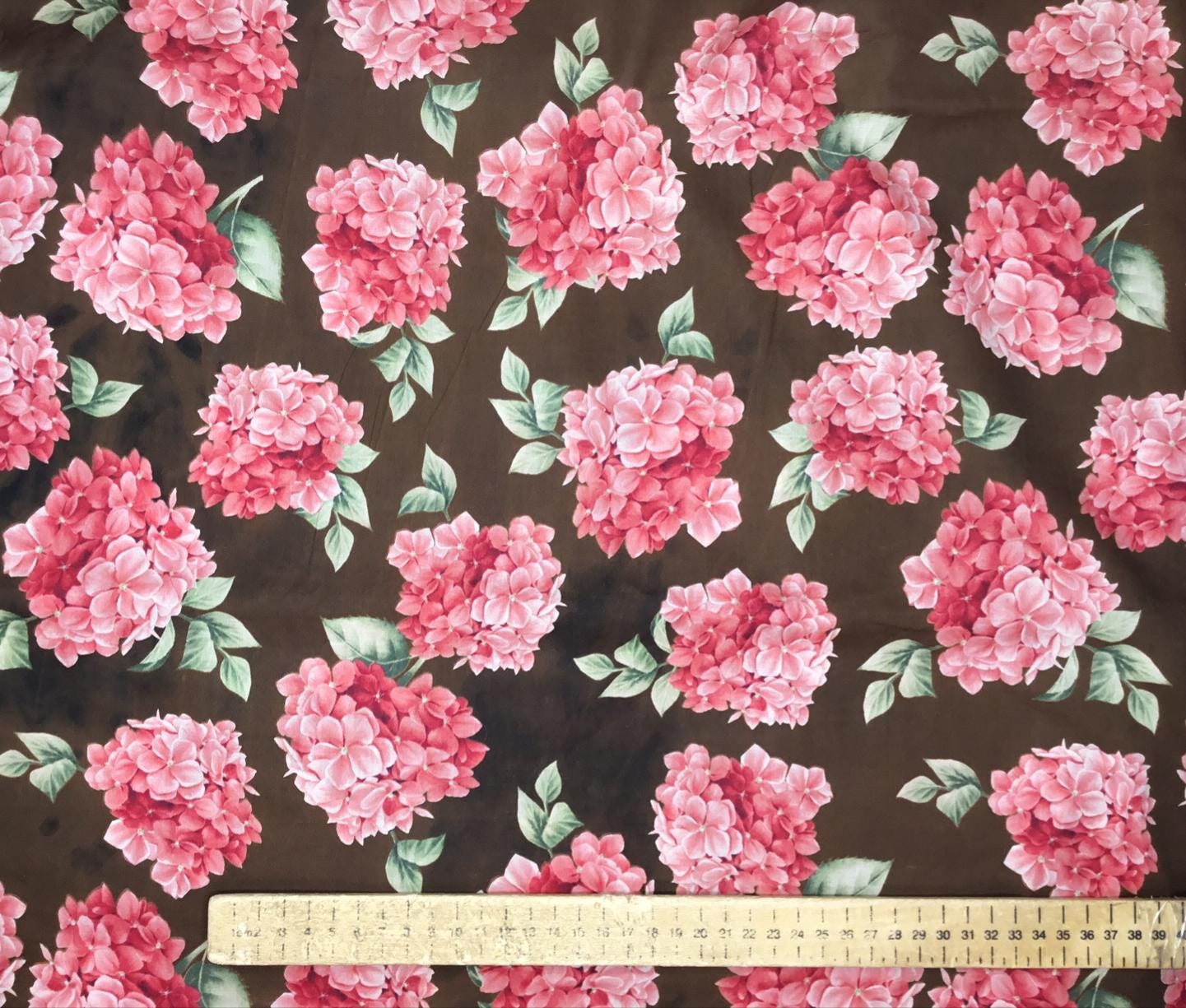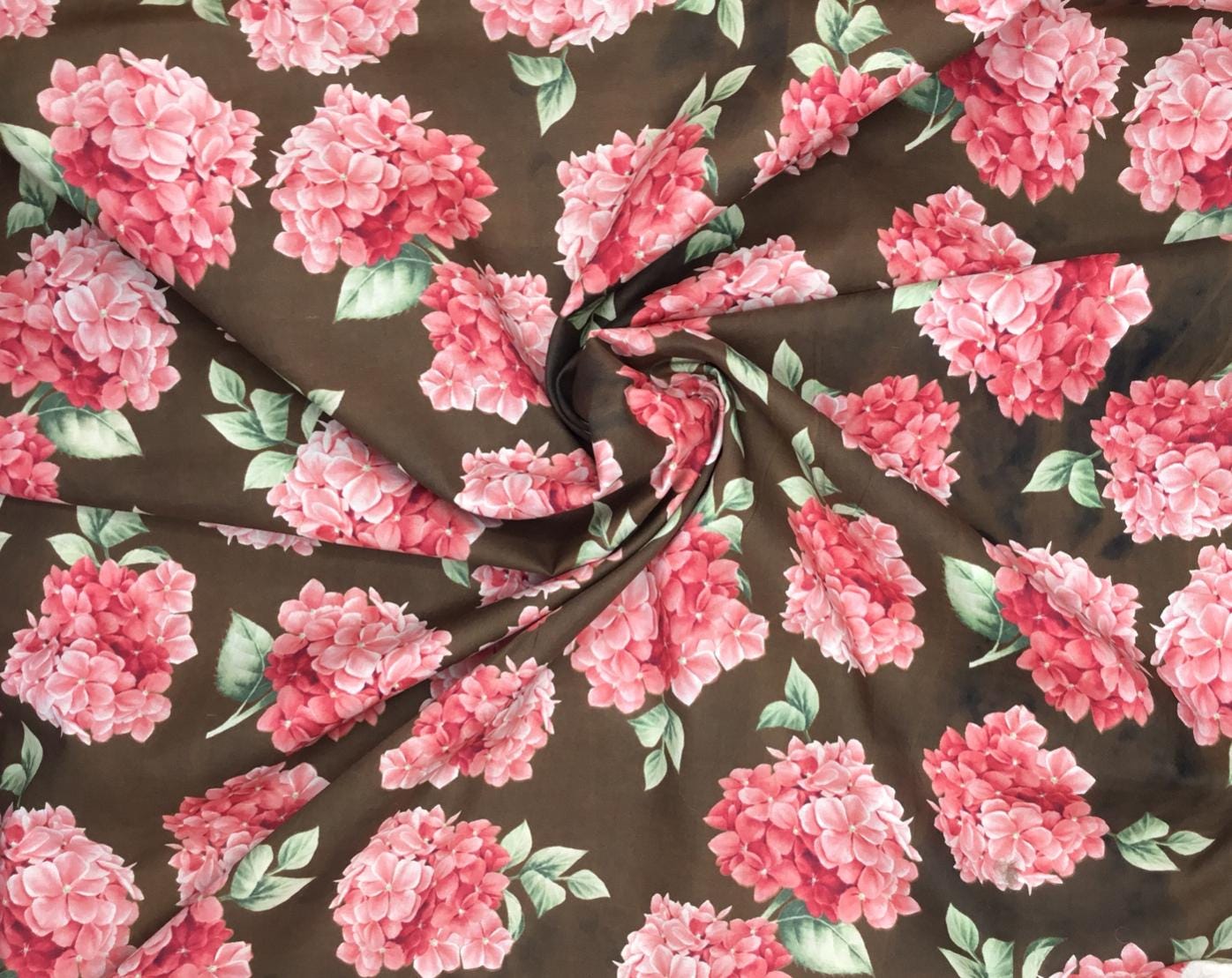 English Pima lawn cotton fabric, roses on brown
