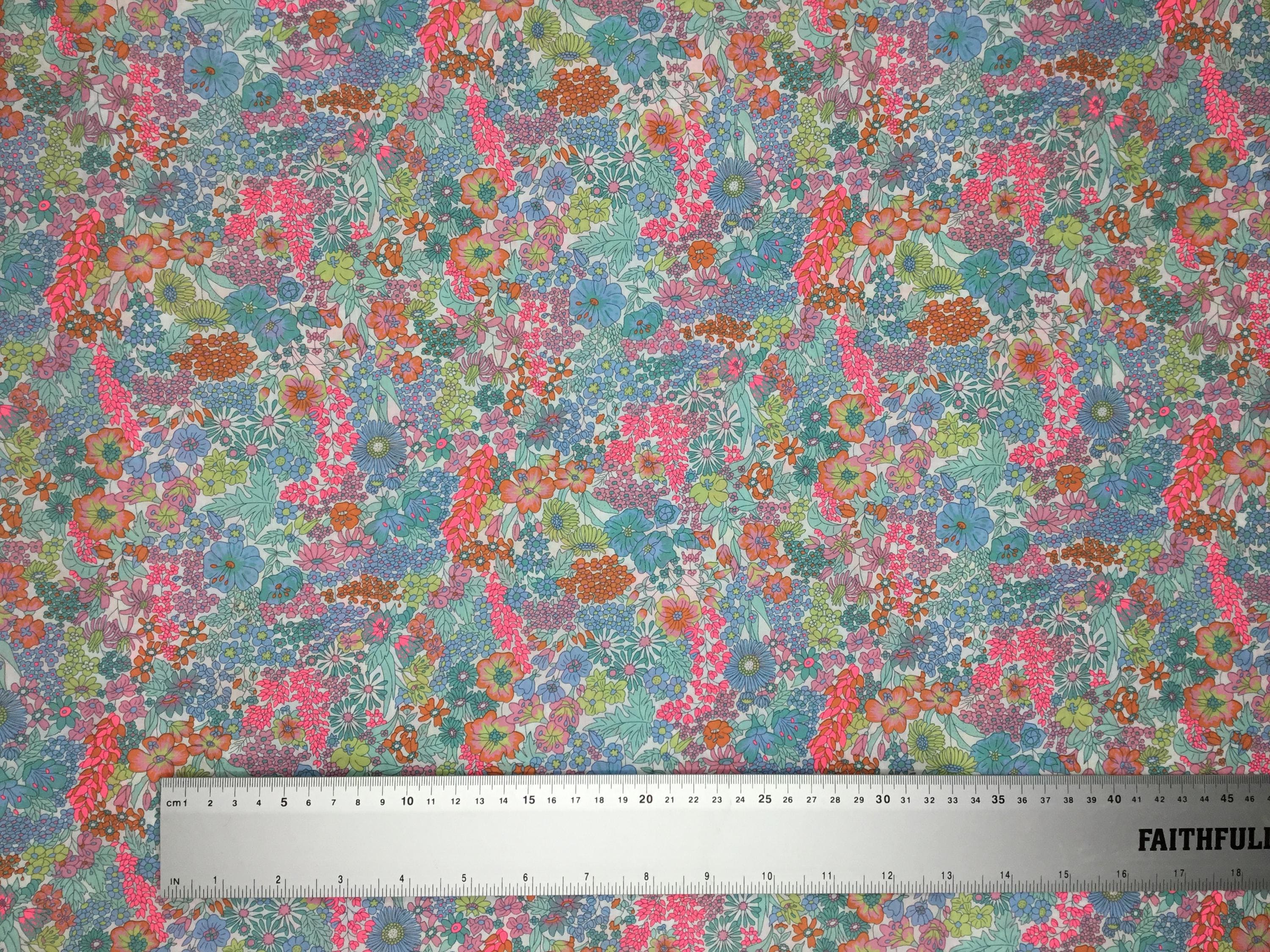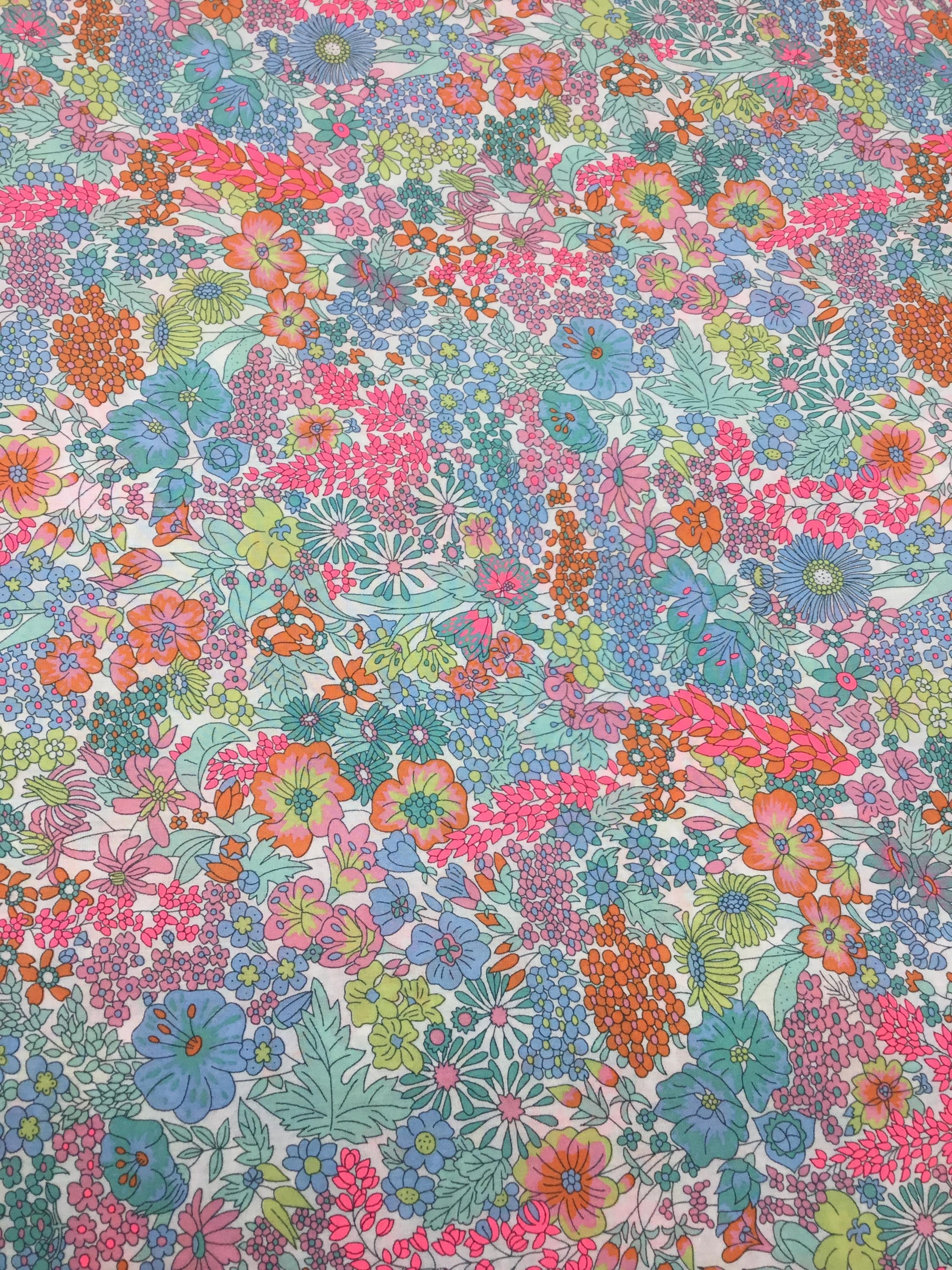 Tana lawn fabric from Liberty of London, Margaret Annie vahite fluo