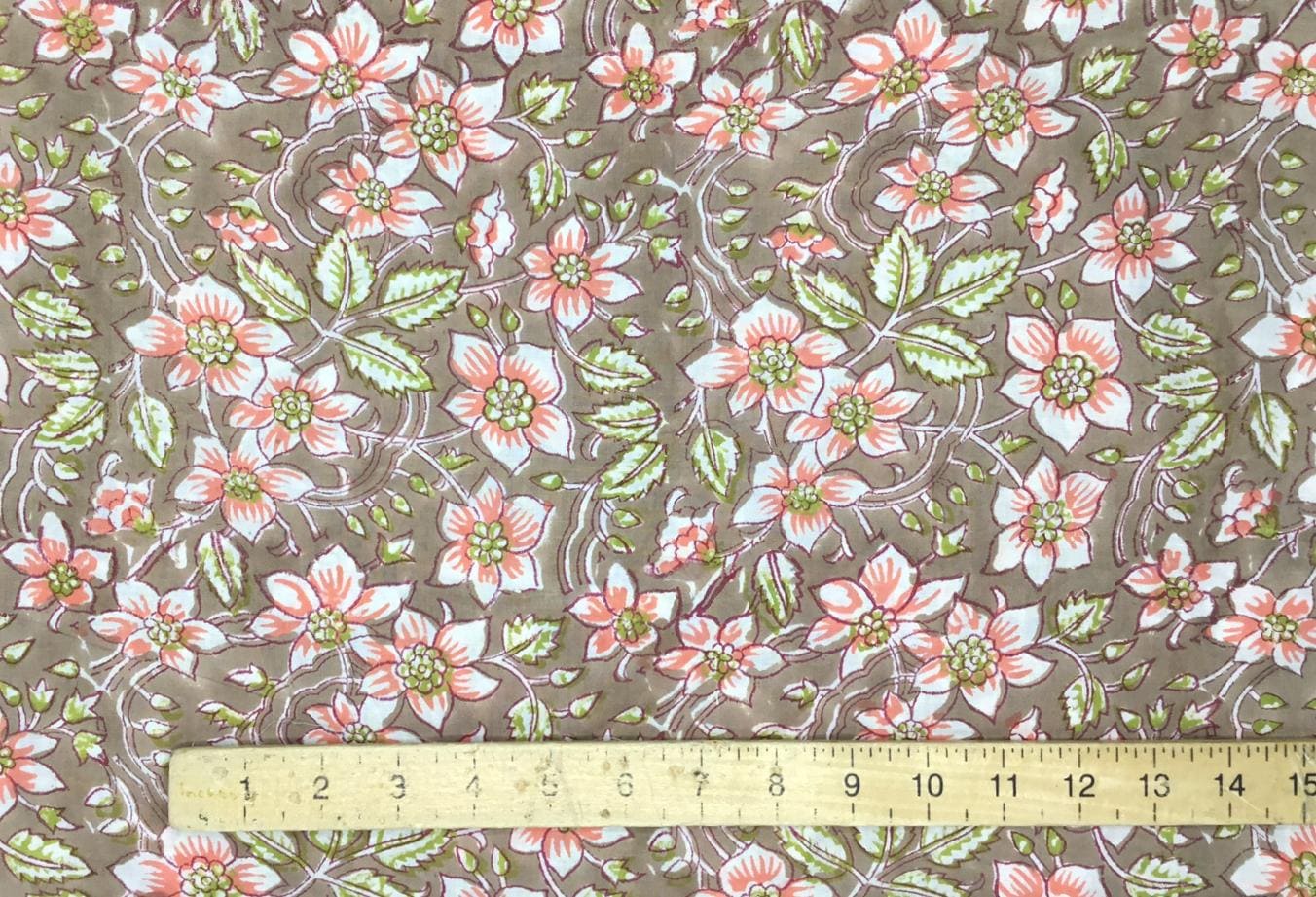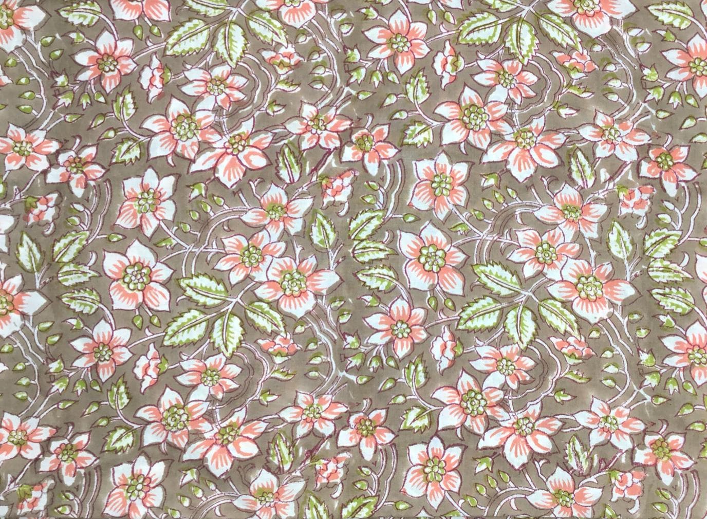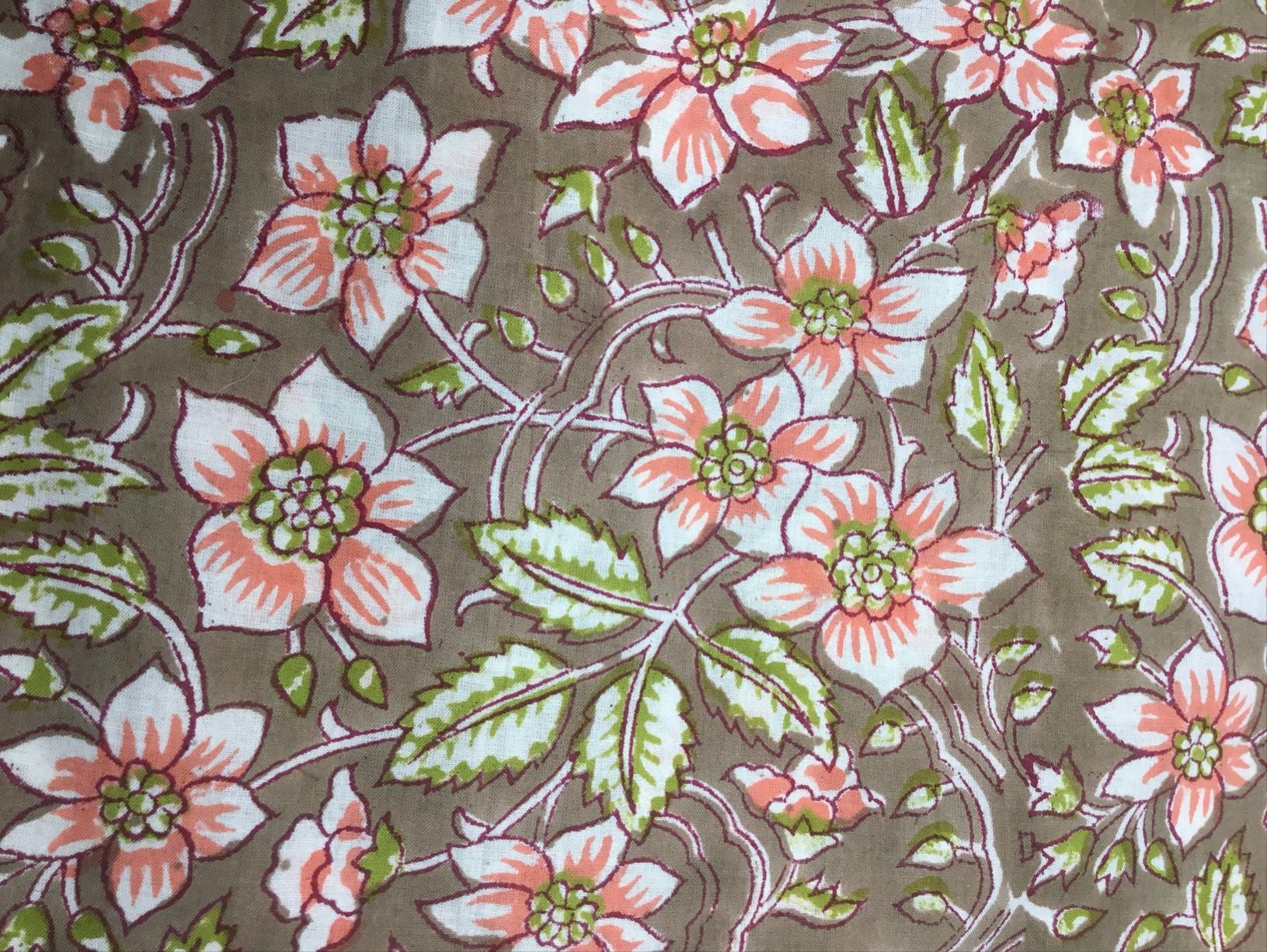 Hand printed, traditional blockprint from India. Floral print on moss green