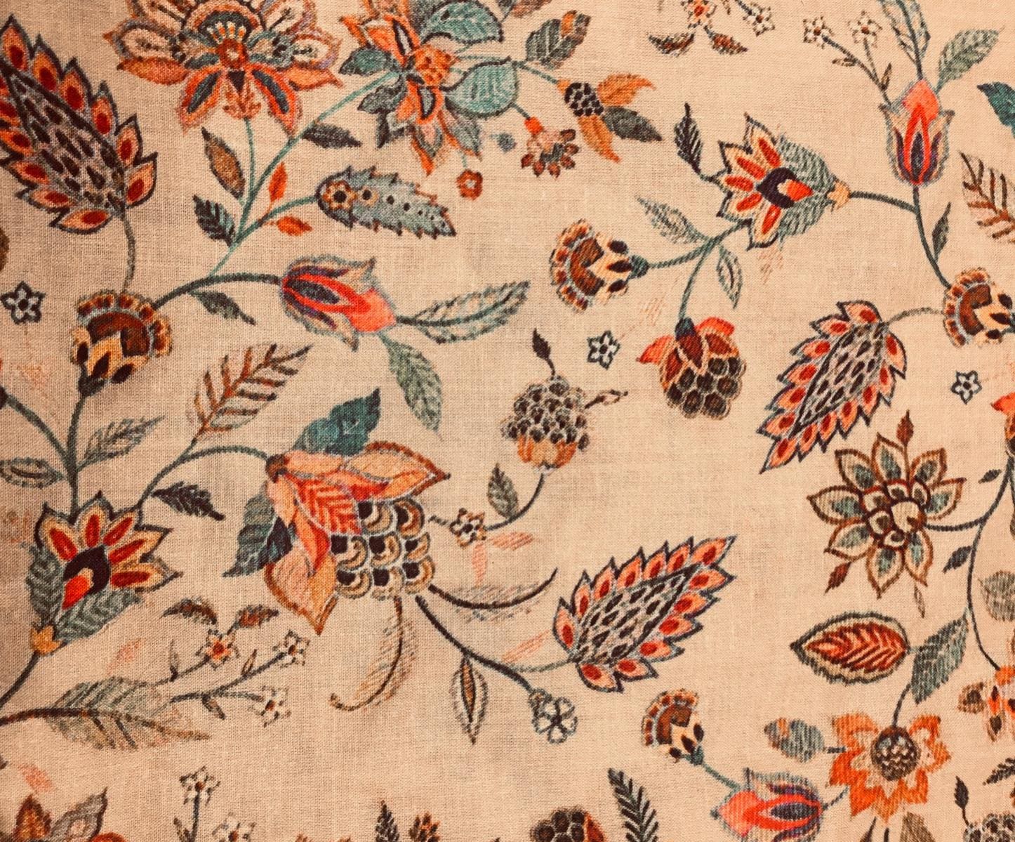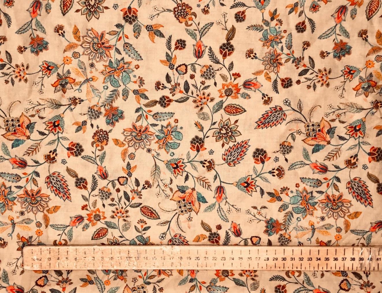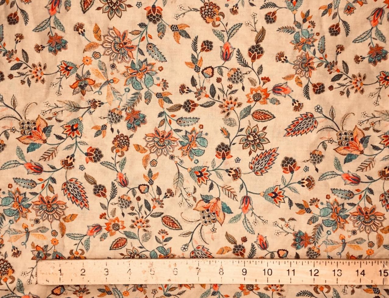 English Pima lawn cotton fabric, beige floral print