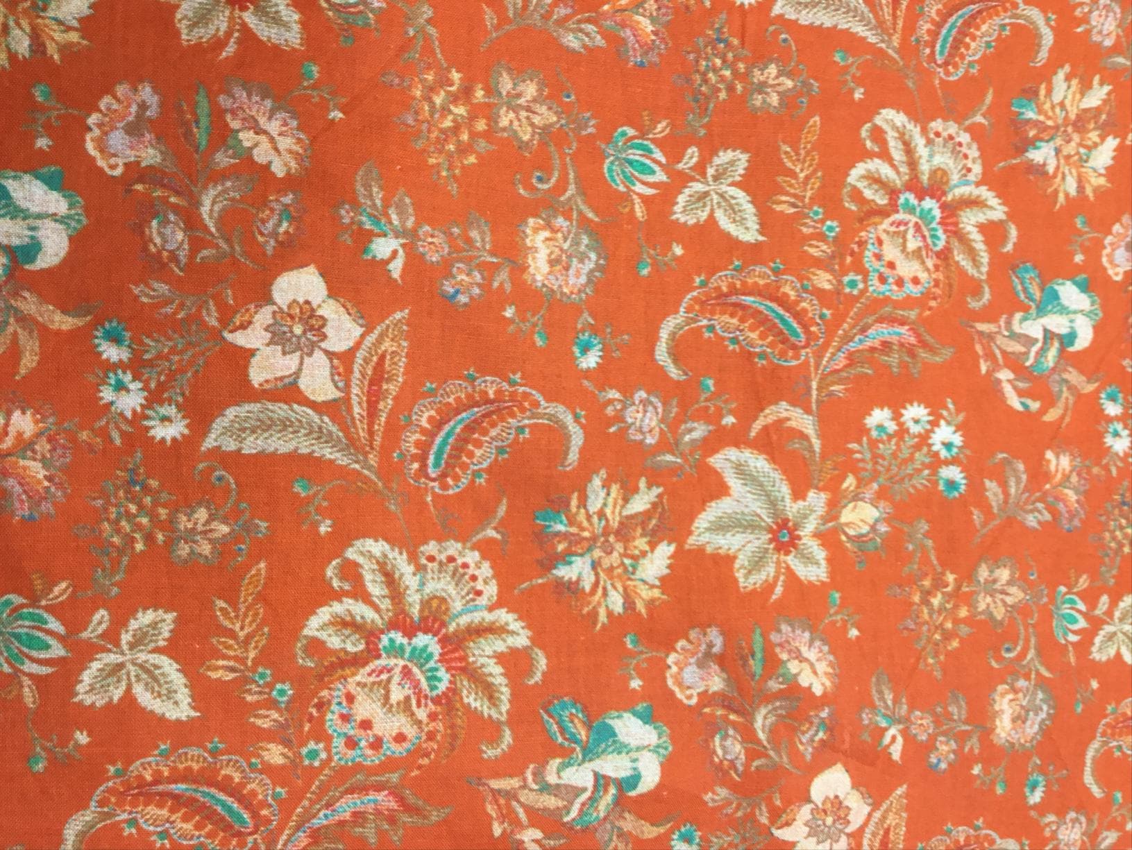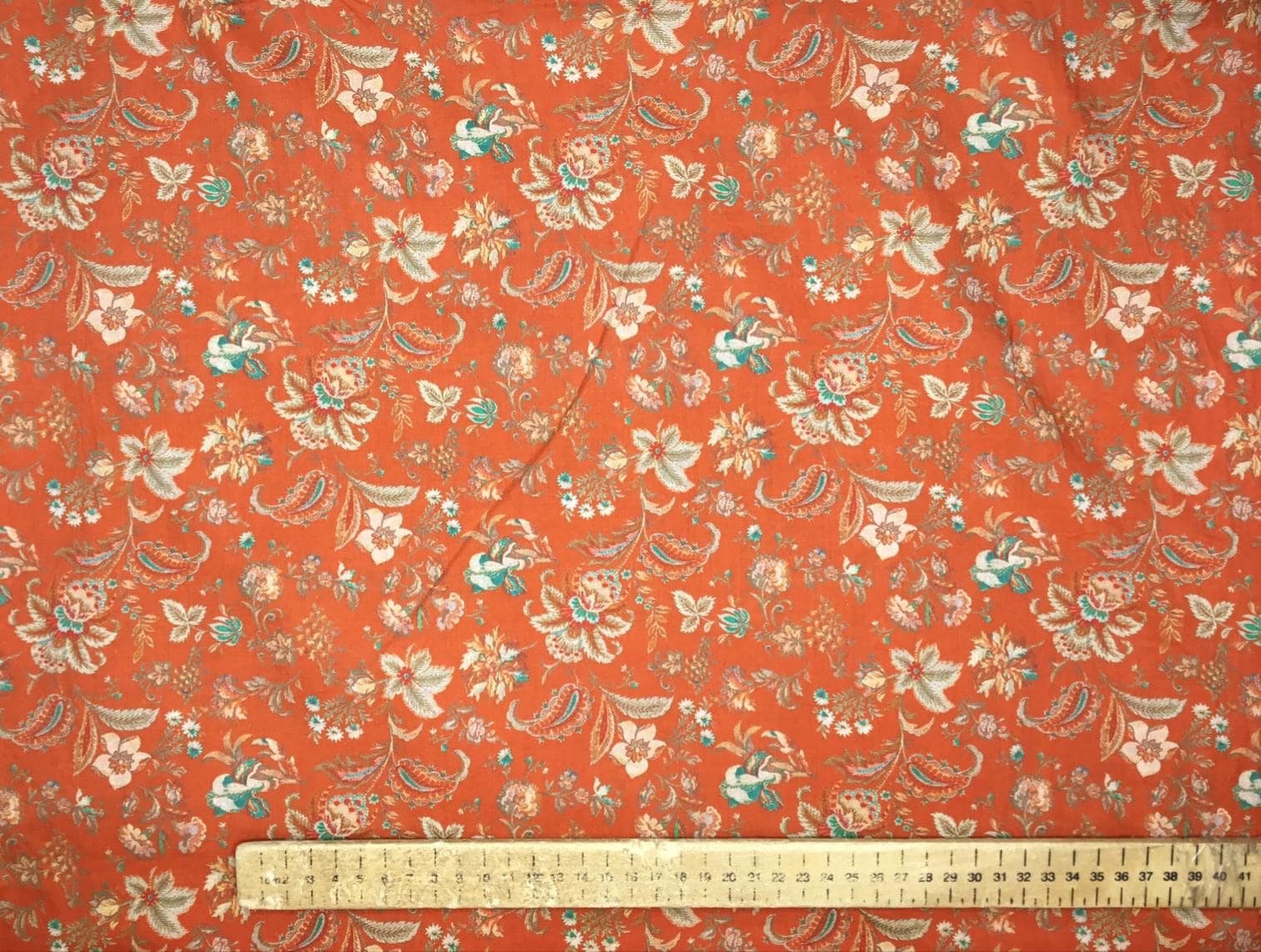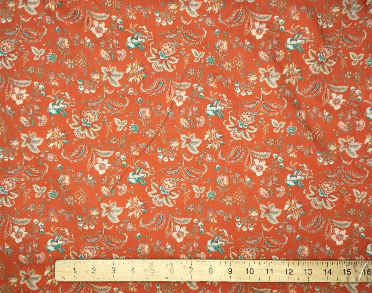 English Pima lawn cotton fabric, priced per 25cm. English floral on rust