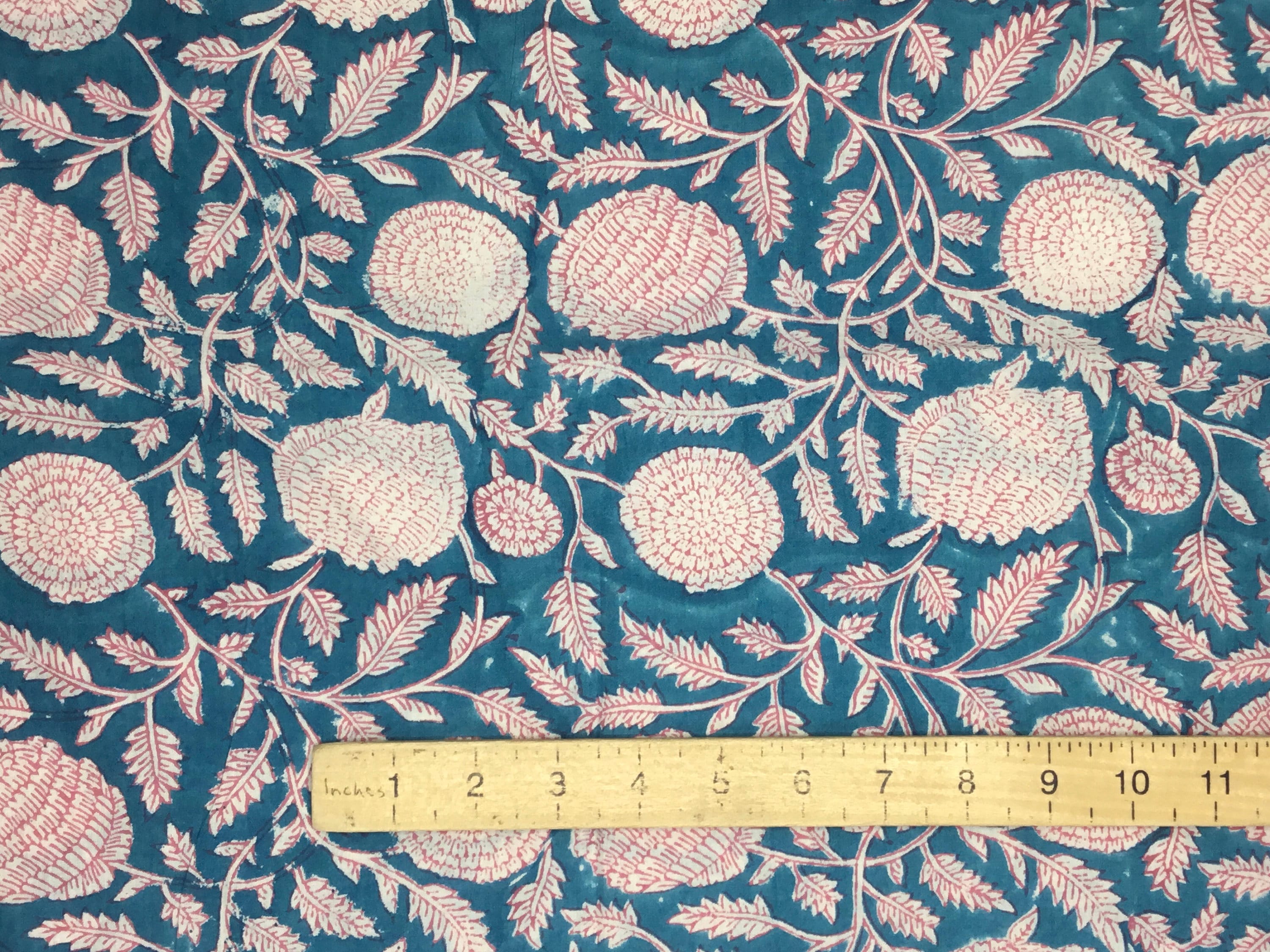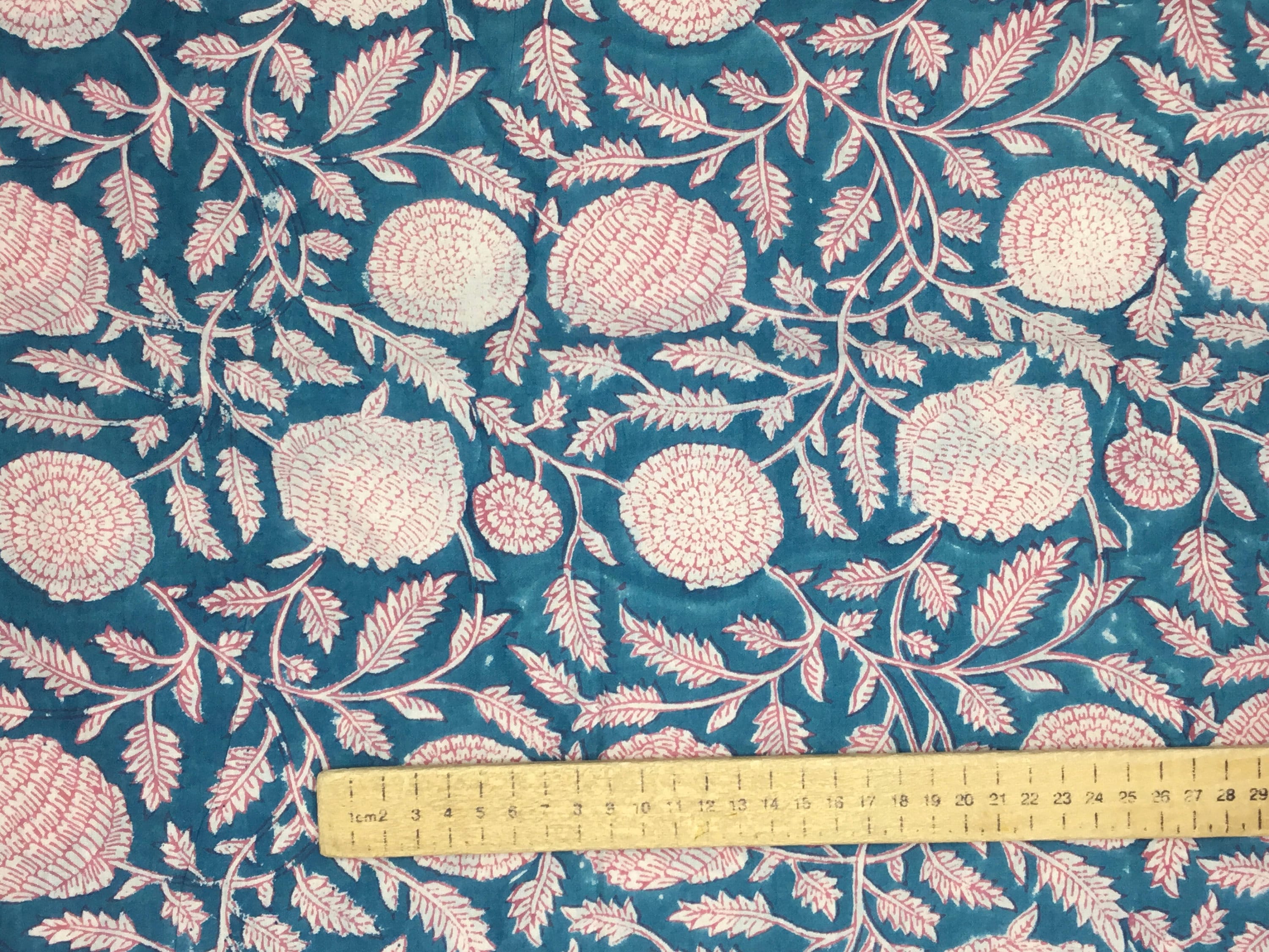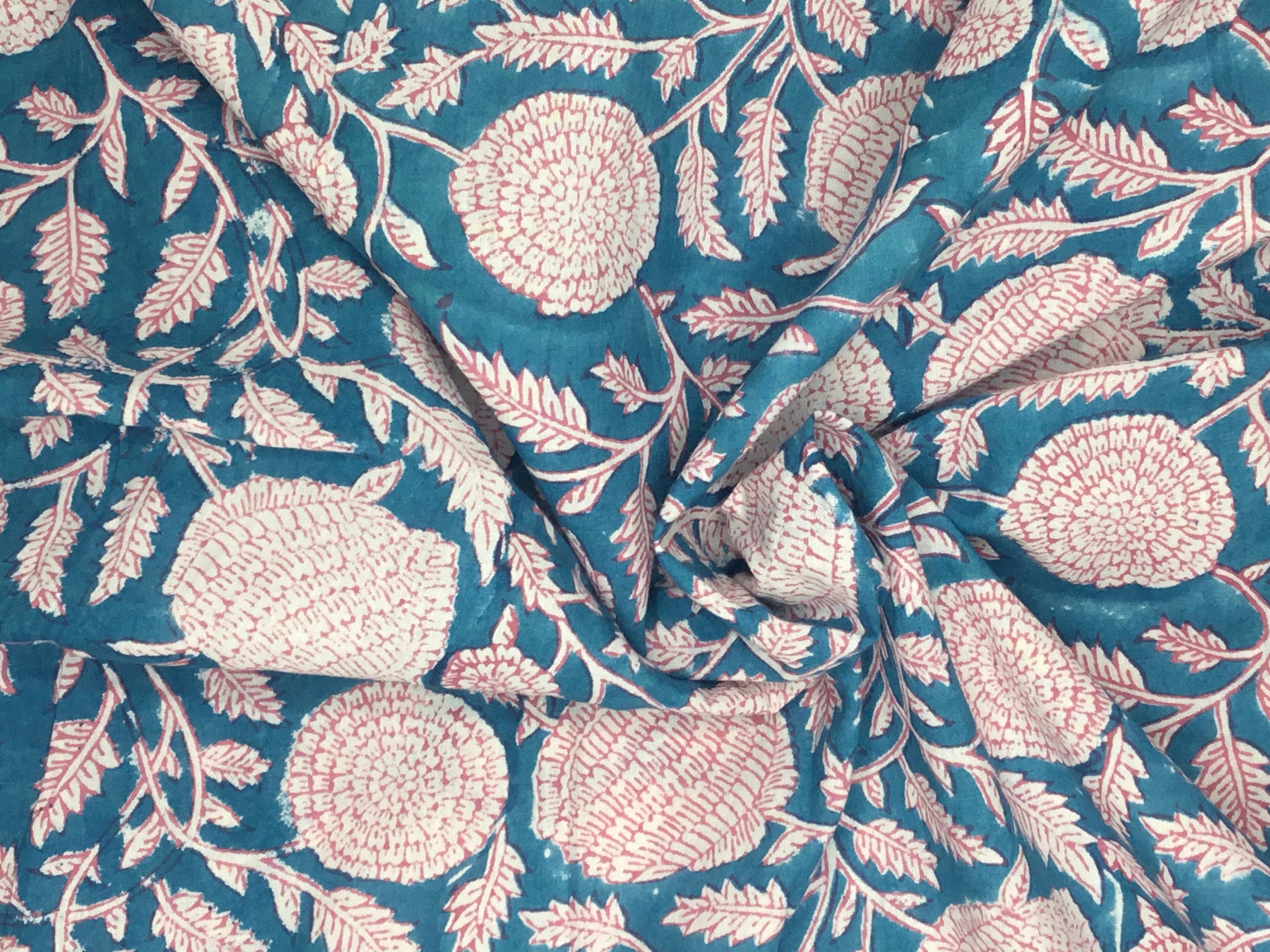 Block print fabric. High quality cotton voile, printed by hand in India, using hand made, carved tree blocks. Fabric manufactured in the Jaipur region. Only natural dies, no chemicals.