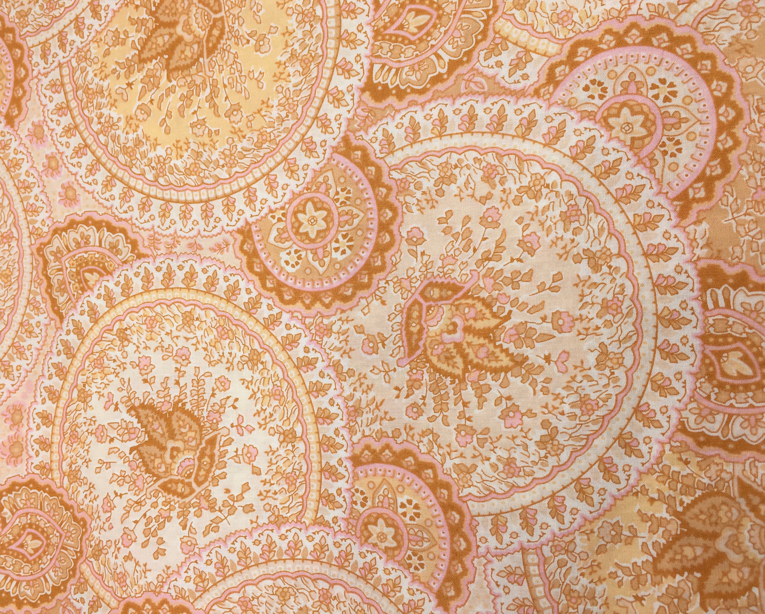 English Pima lawn cotton fabric, priced per 25cm. Paisley, Taj Mahal gold