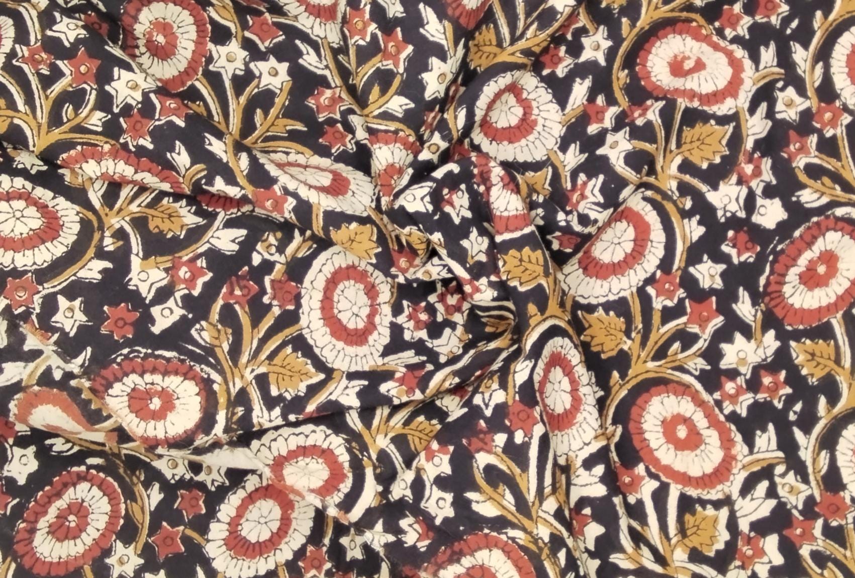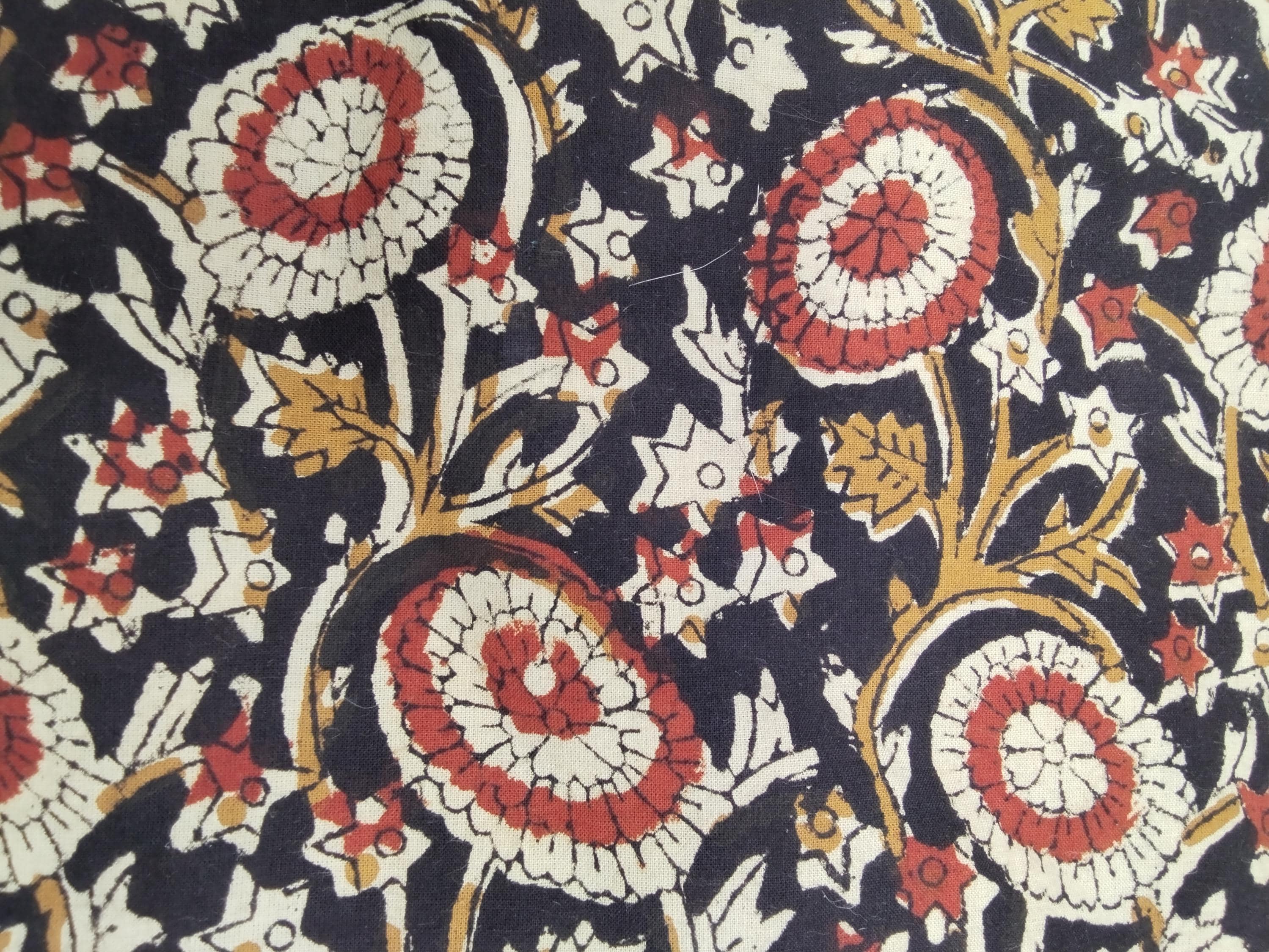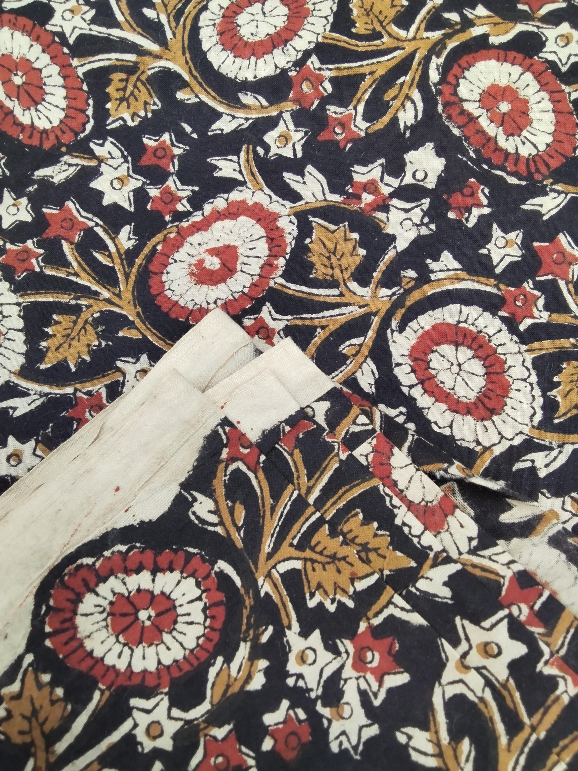 Indian block printed cotton muslin, hand made black and brown Jaipur blockprint