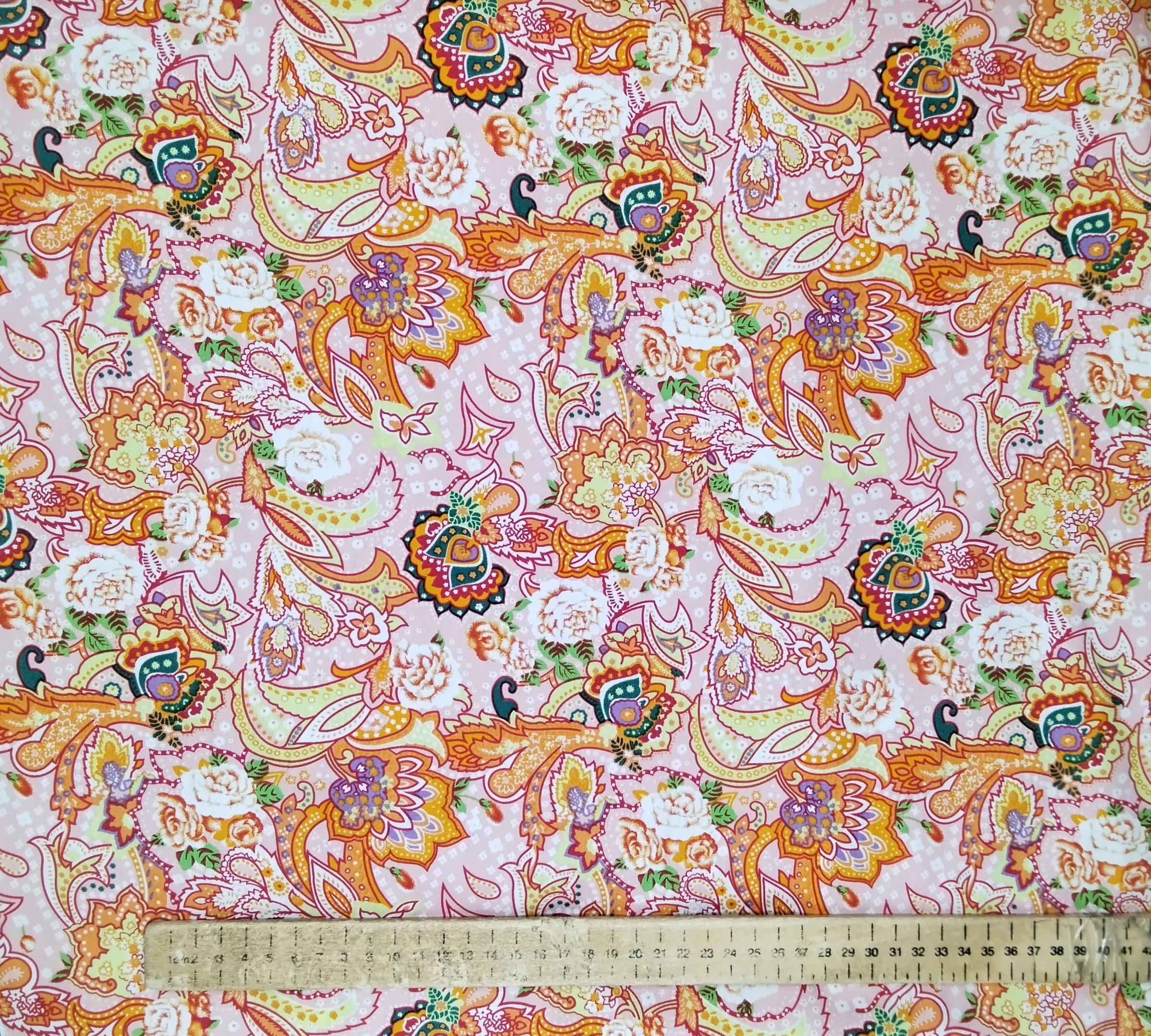 High quality cotton poplin dyed in Japan. Cachemire print. Rose and Hubble branded fabric