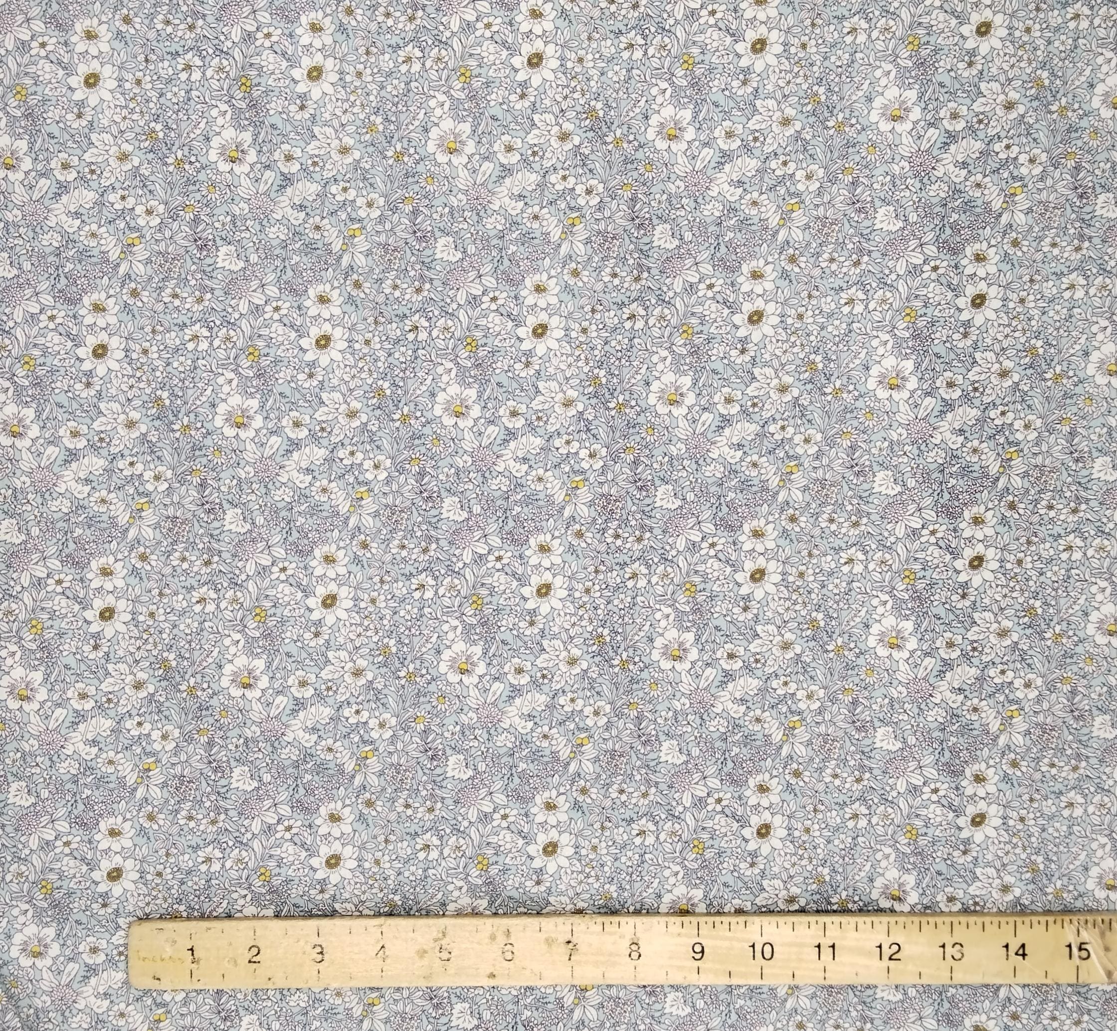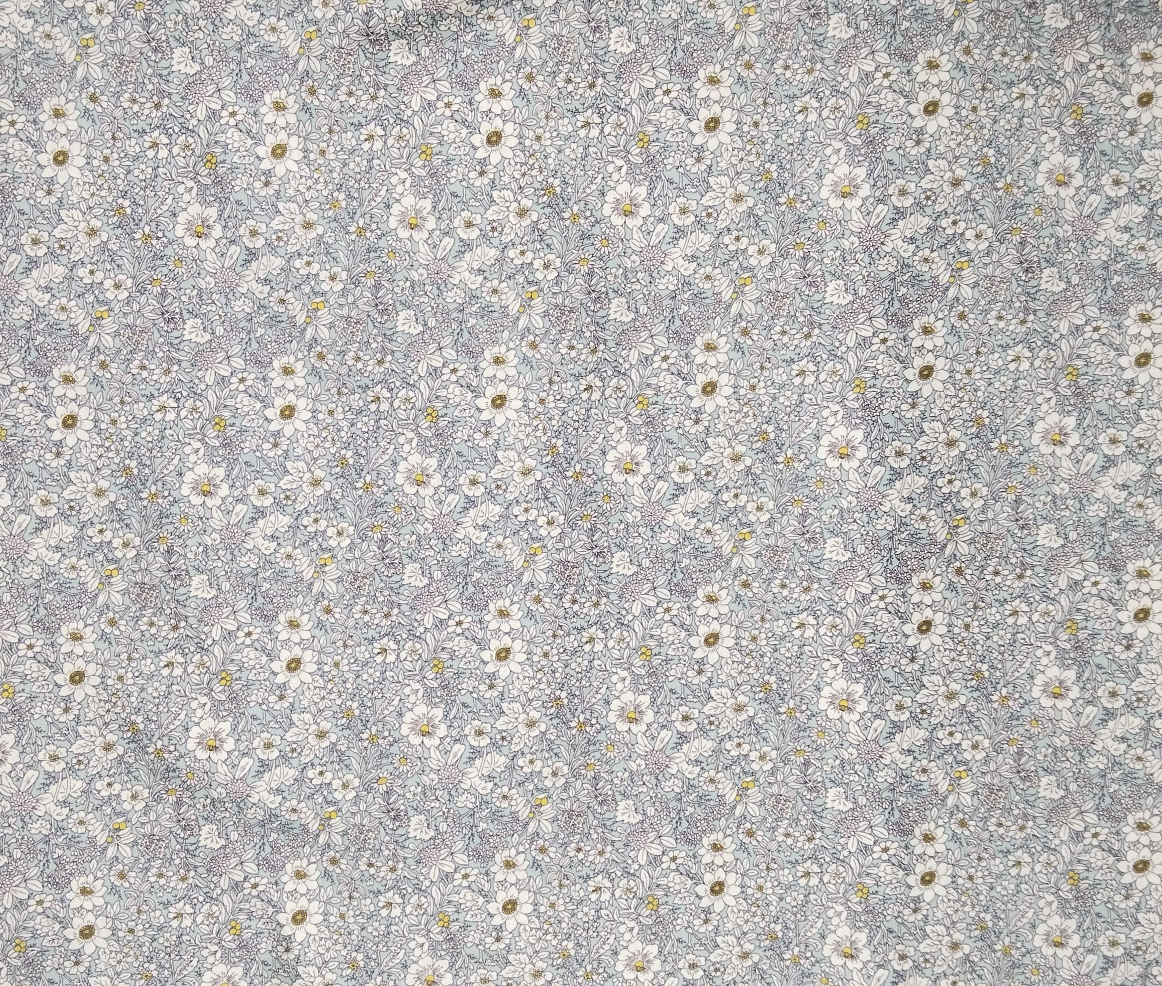 Un gris-vert subtil avec de jolies fleurs jaunes d'un très bel effet. Un beau tissu facile à travailler. Merci !