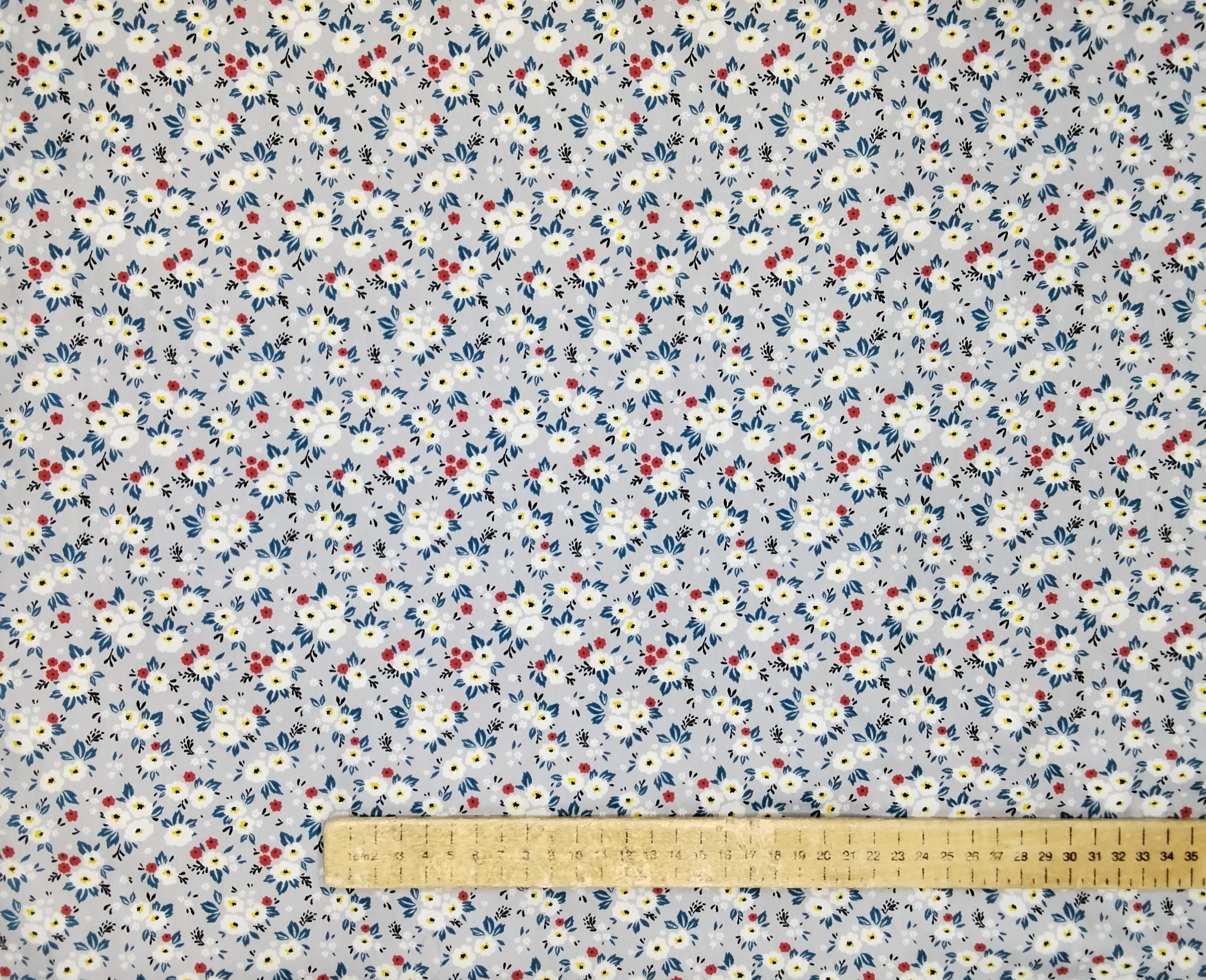 Cotton poplin with Fifties floral on silver Grey
