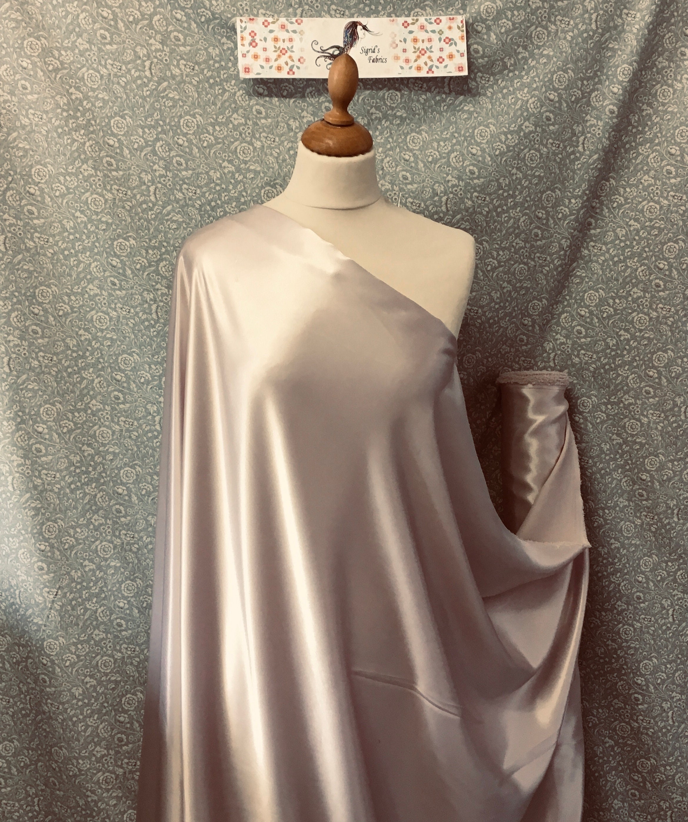 High quality silky satin back crepe, very close to genuine silk satin fabric.
