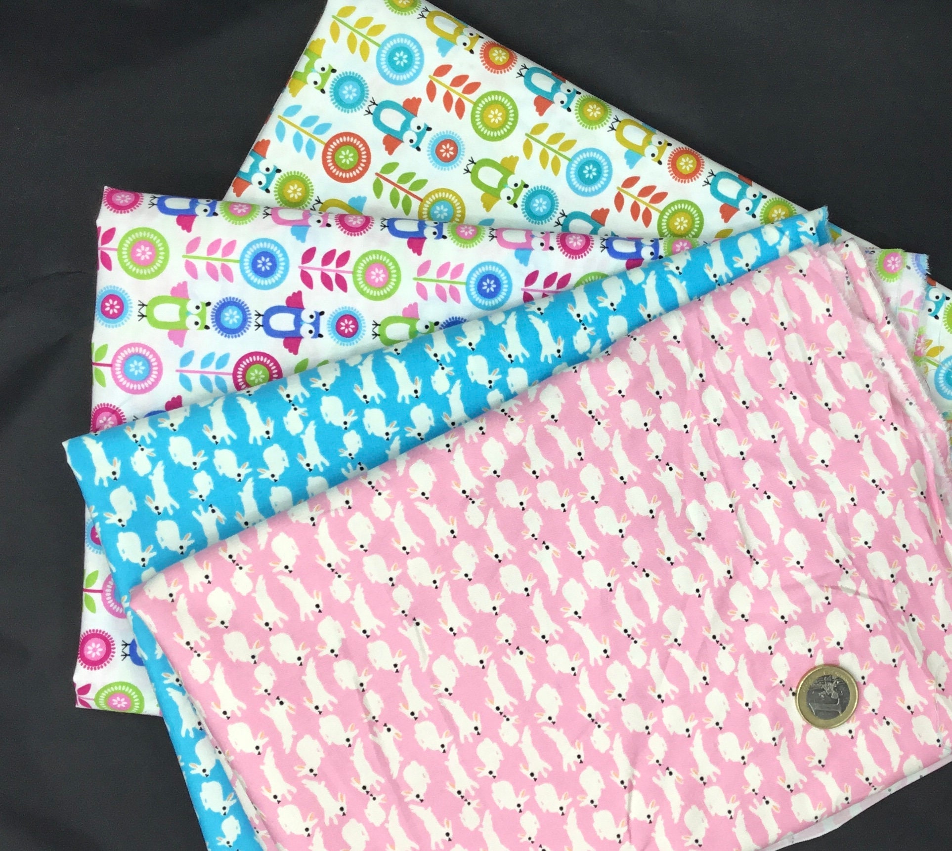 4 pieces cotton poplin fabric, each 1m (40”) long and 1m12 (44”) wide. Total 4m