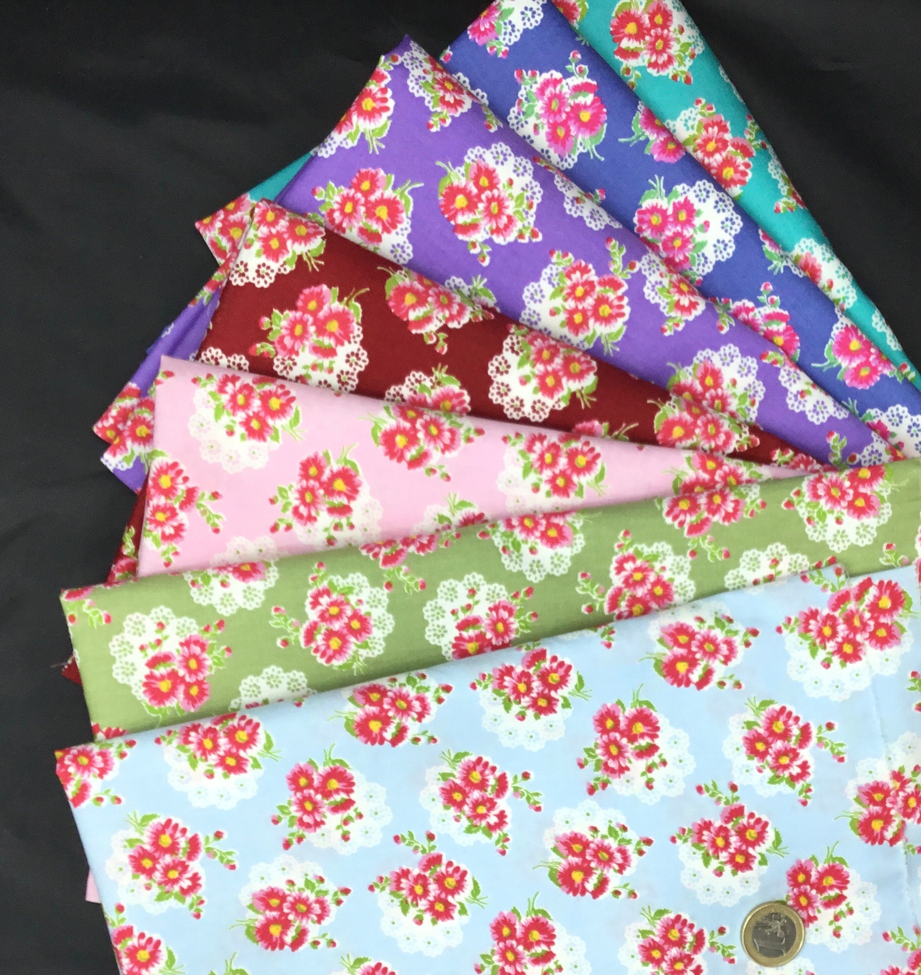 7 pieces cotton poplin fabric, 1m (40”) long and 1m12 (44”) wide. Total 7m